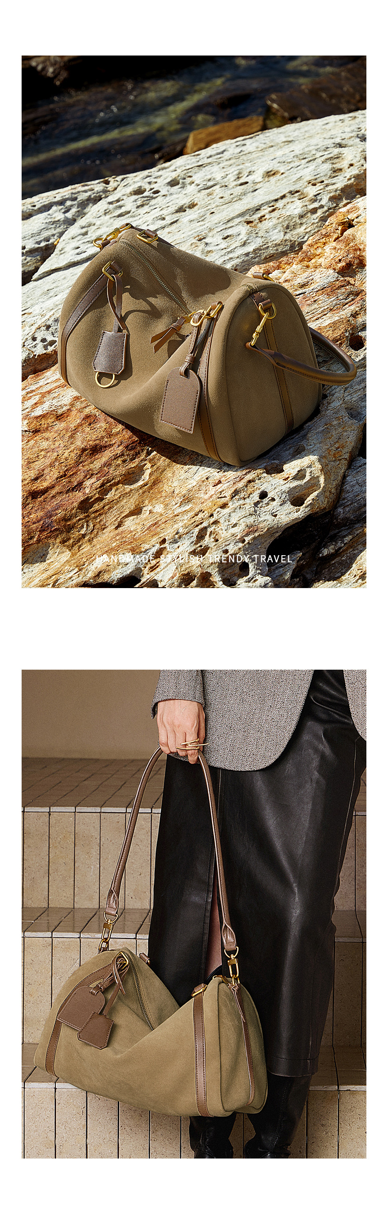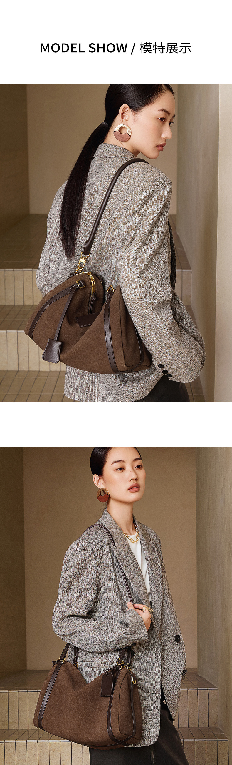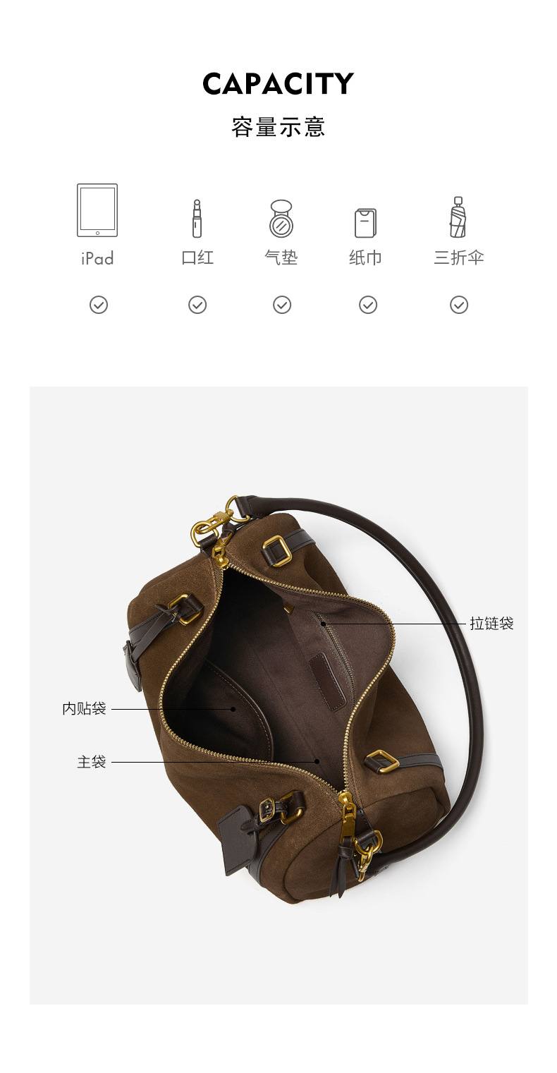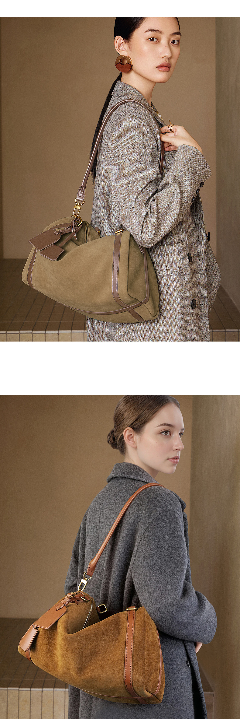 磨砂牛皮保龄球包大容量通勤百搭波士顿单肩斜挎包鹿皮绒托特女包