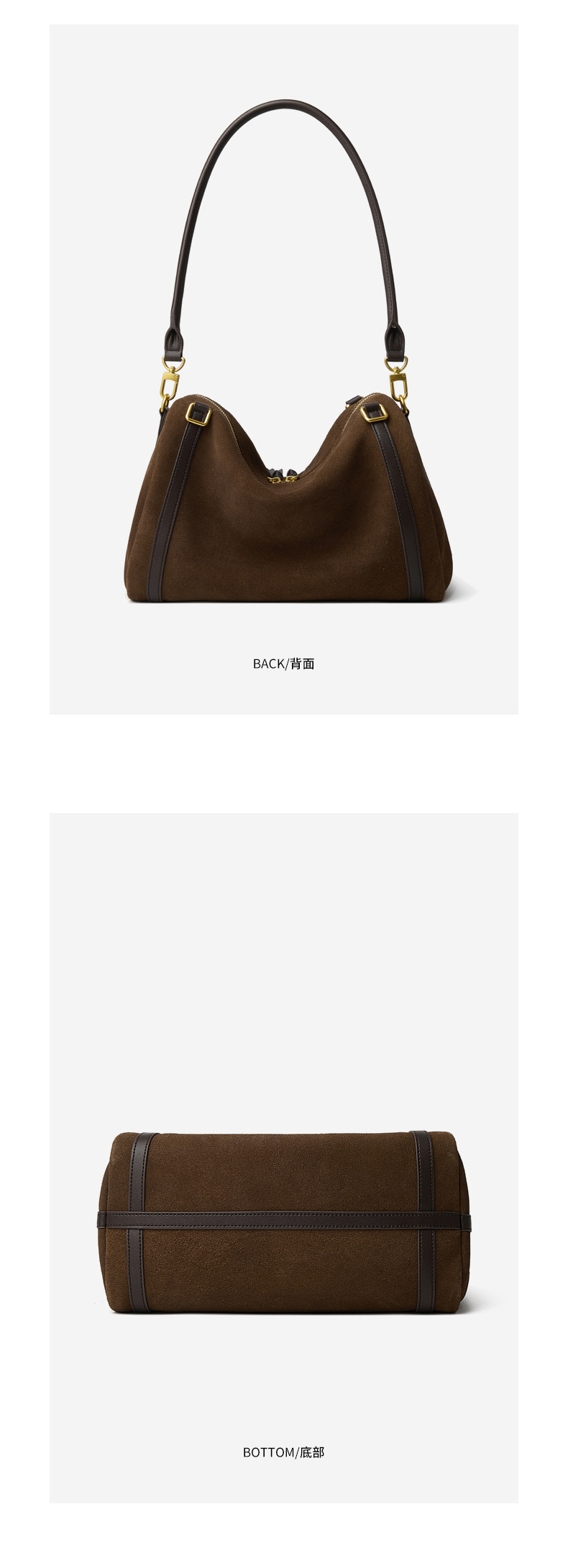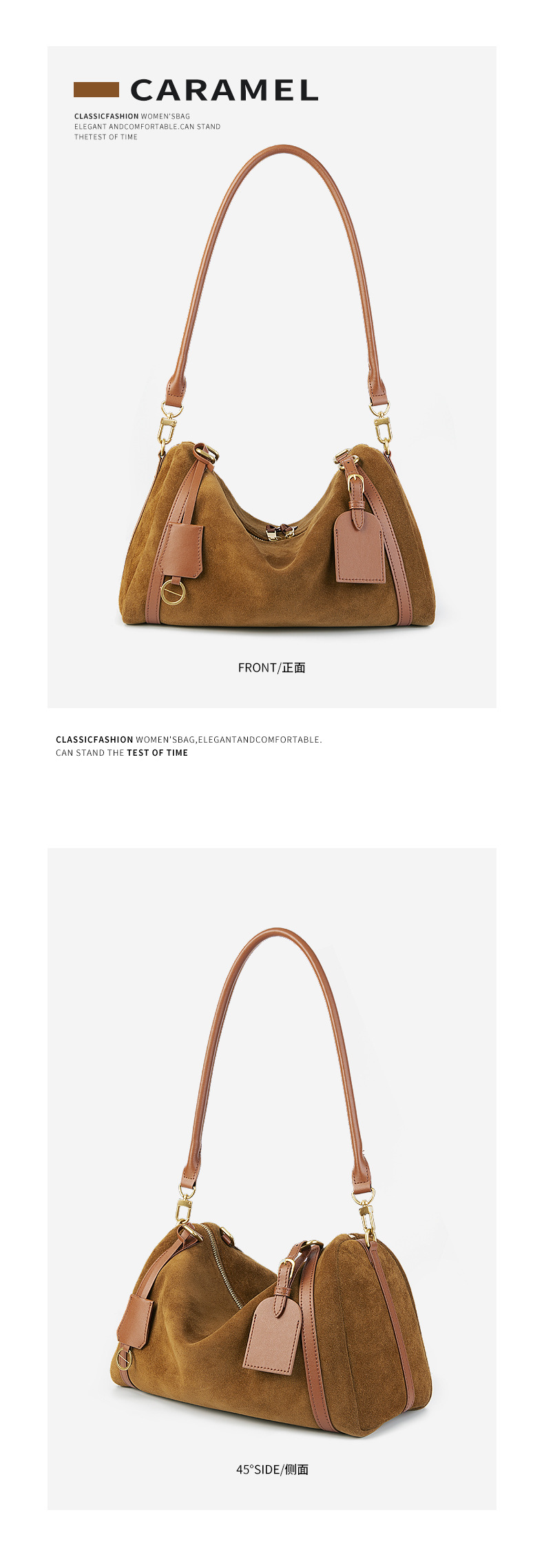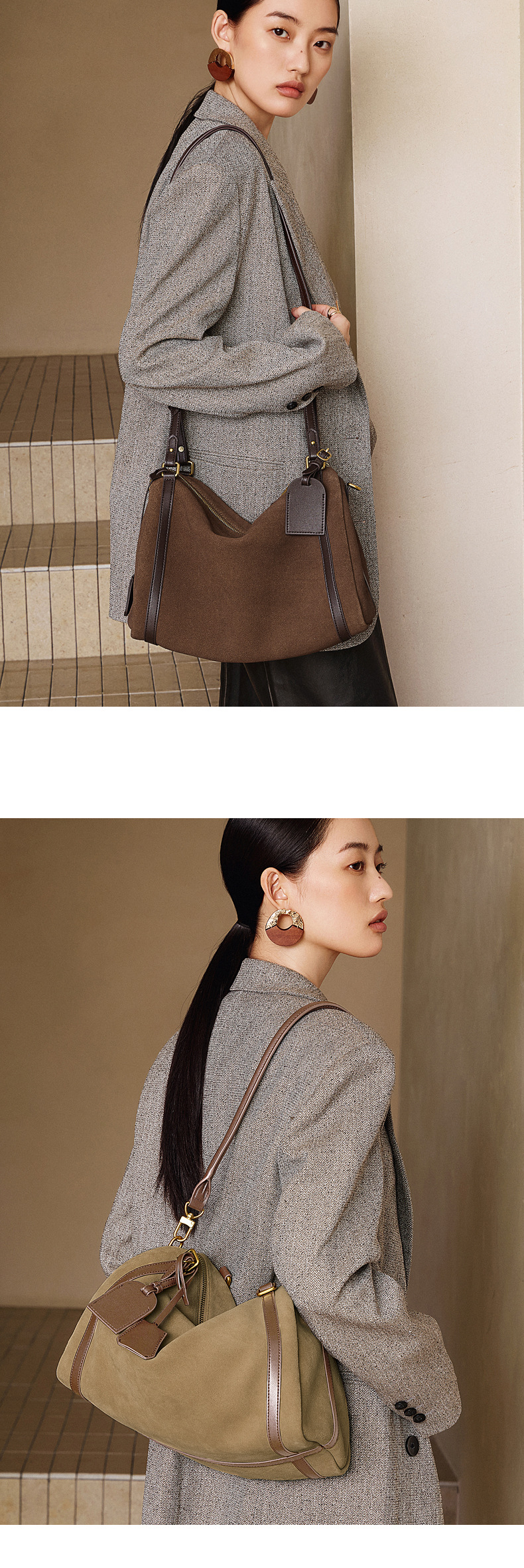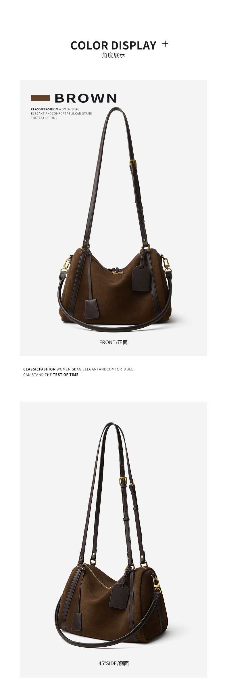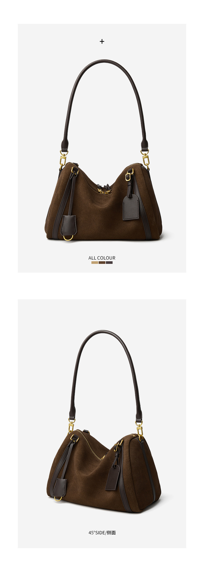 磨砂牛皮保龄球包大容量通勤百搭波士顿单肩斜挎包鹿皮绒托特女包