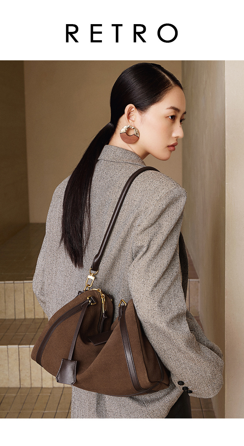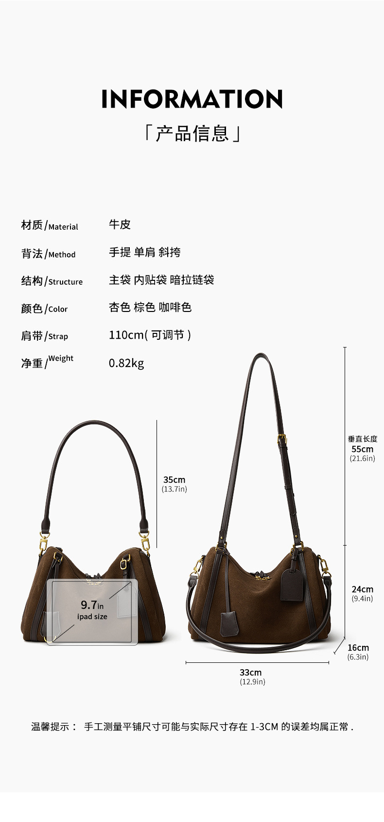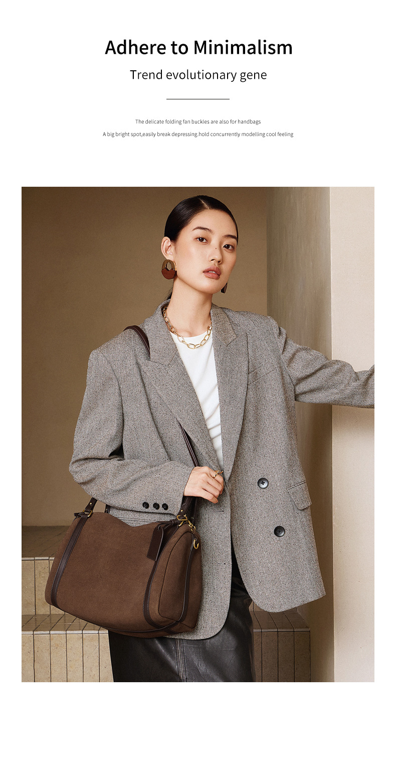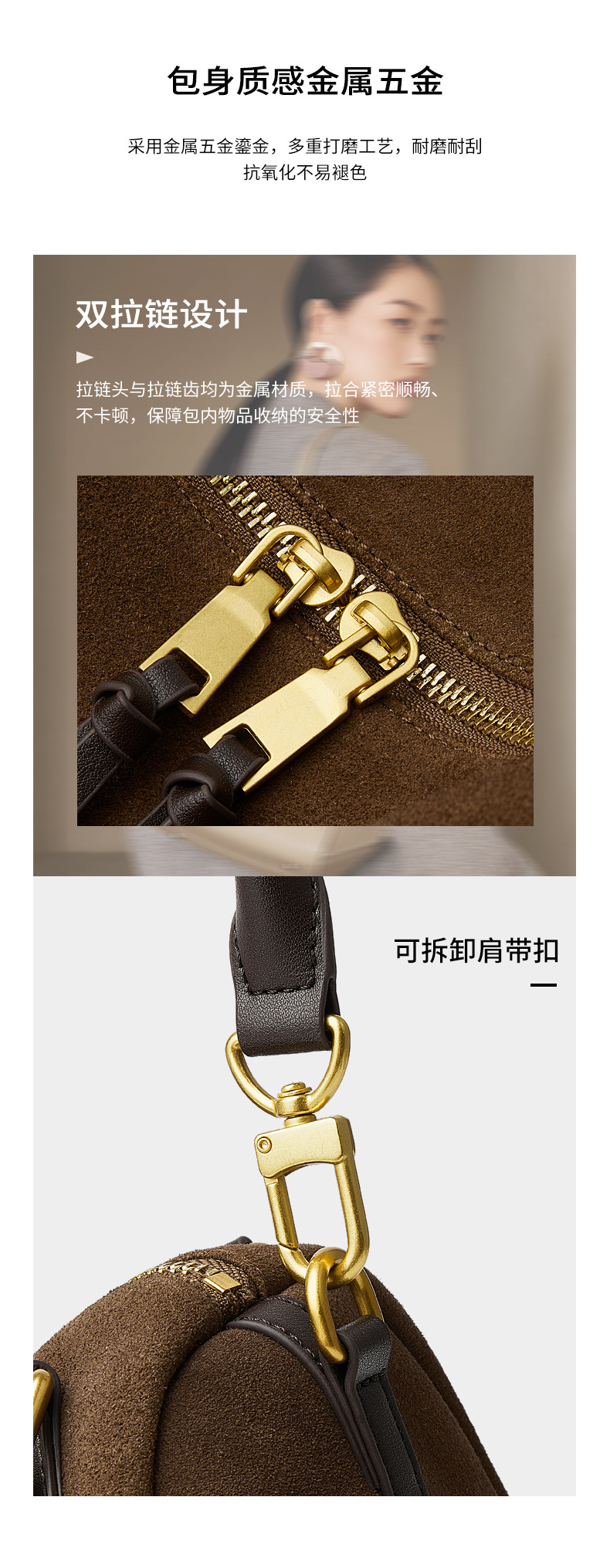 磨砂牛皮保龄球包大容量通勤百搭波士顿单肩斜挎包鹿皮绒托特女包