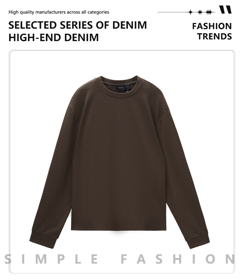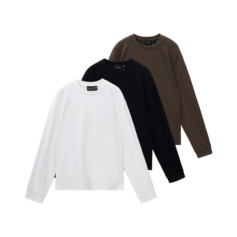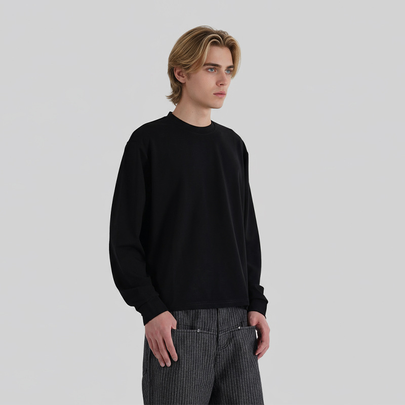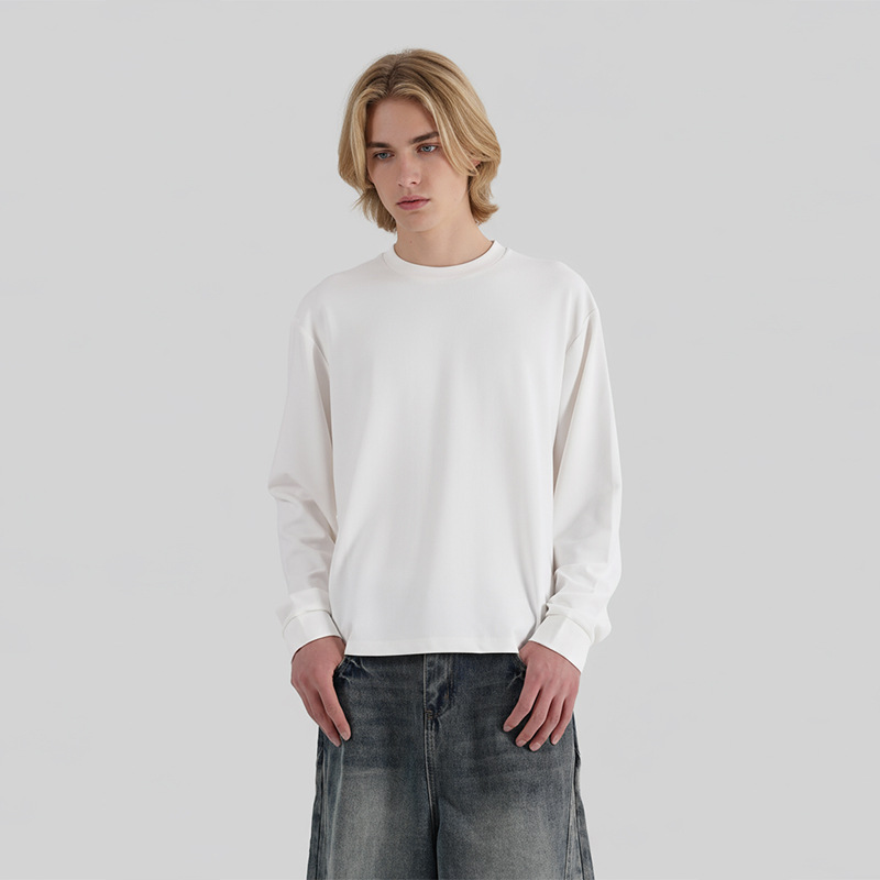 LKTM男装 秋冬季基础款铜氨软糯boxy长袖T恤男纯色圆领保暖打底衫