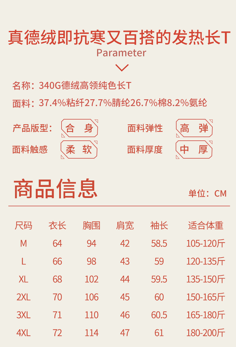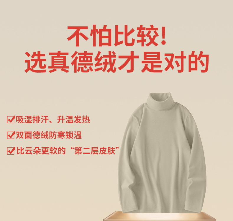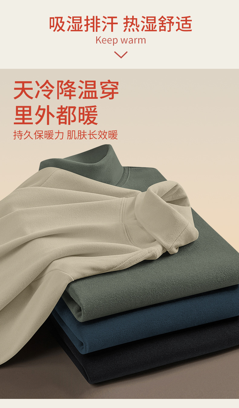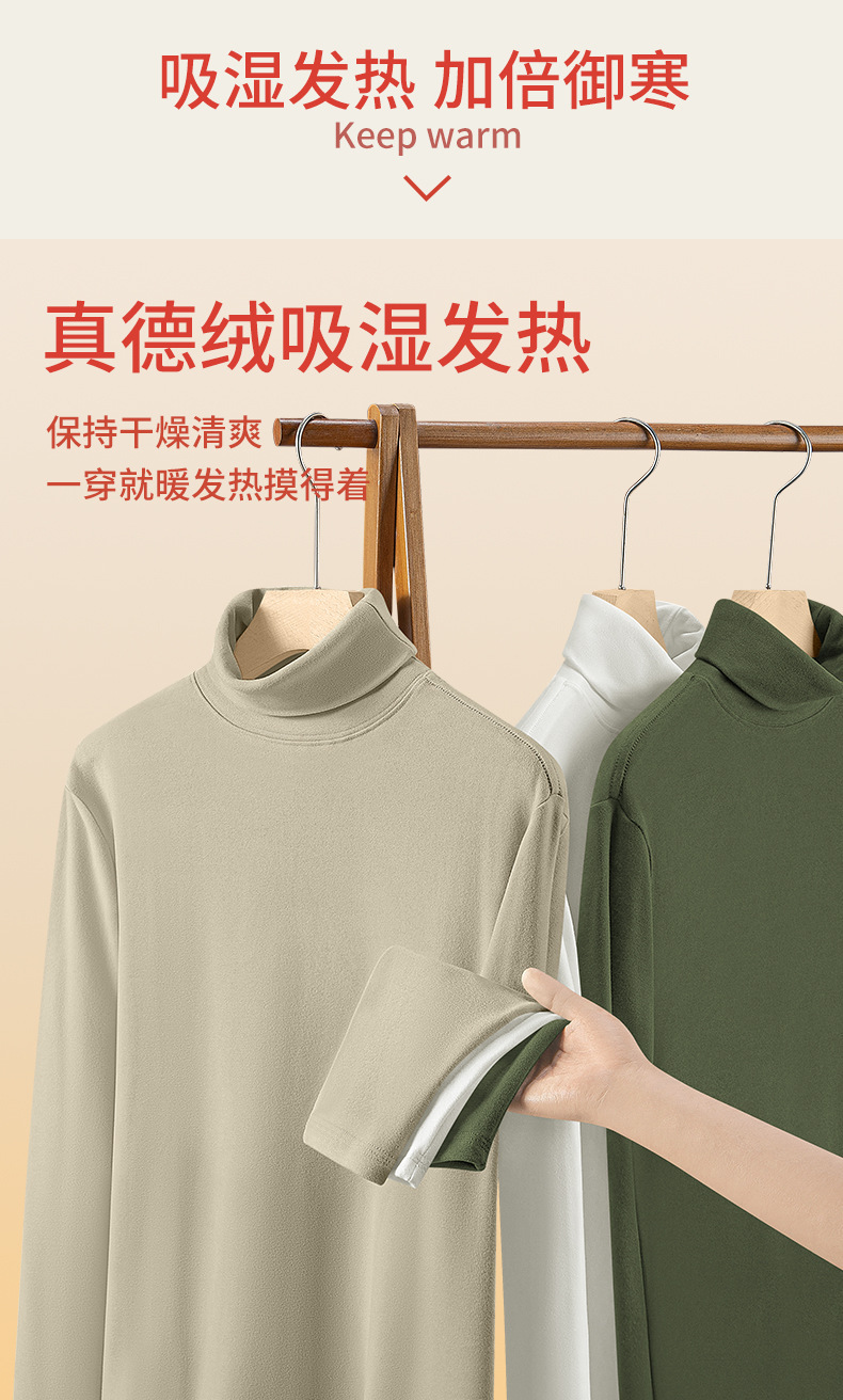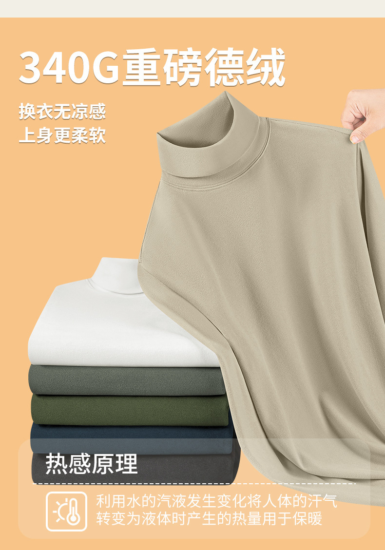 340G真德绒高领男款打底衫秋冬季加绒加厚保暖男士内衣长袖t恤