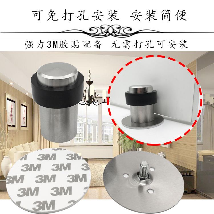 304不锈钢防撞门阻门挡门卡橡胶缓冲大门免打孔玻璃门止门器