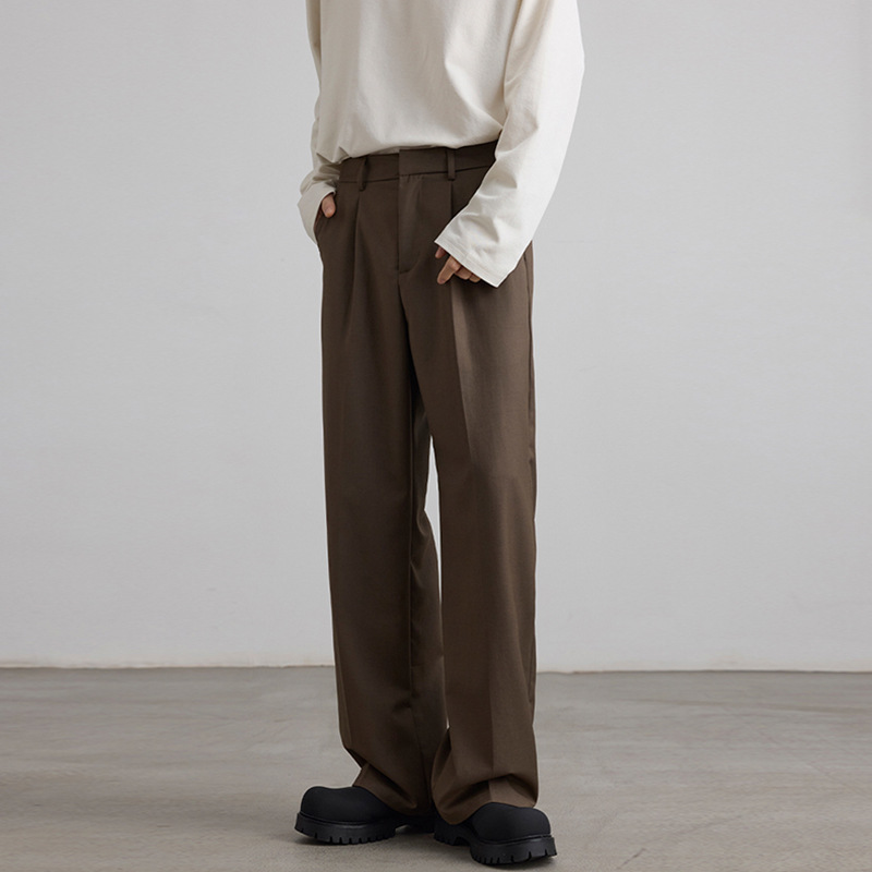 LKTM男装#韩系复古简约褶皱西裤男女潮牌阔腿松弛感通勤休闲长裤