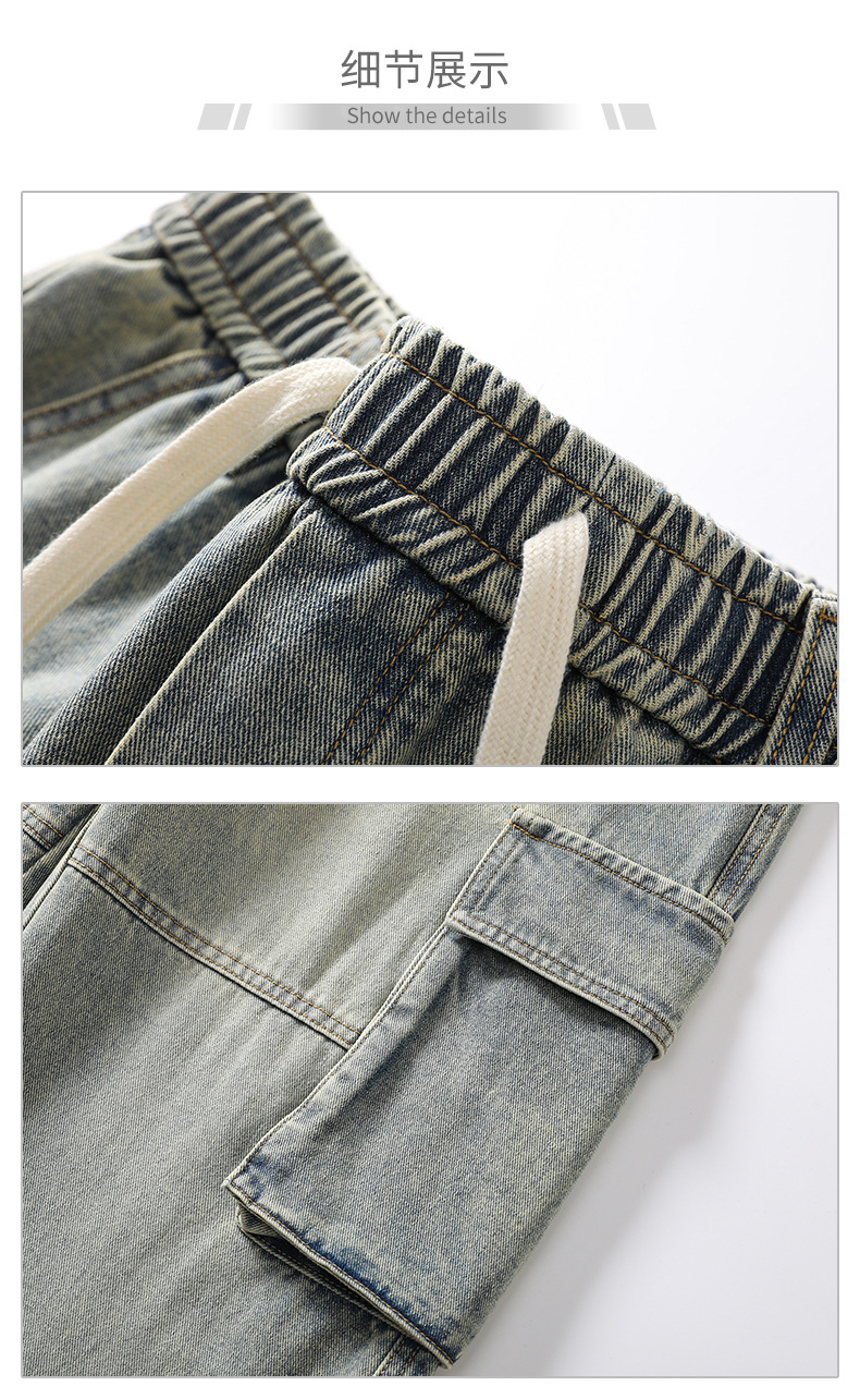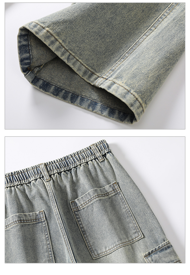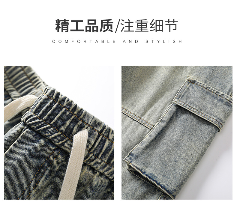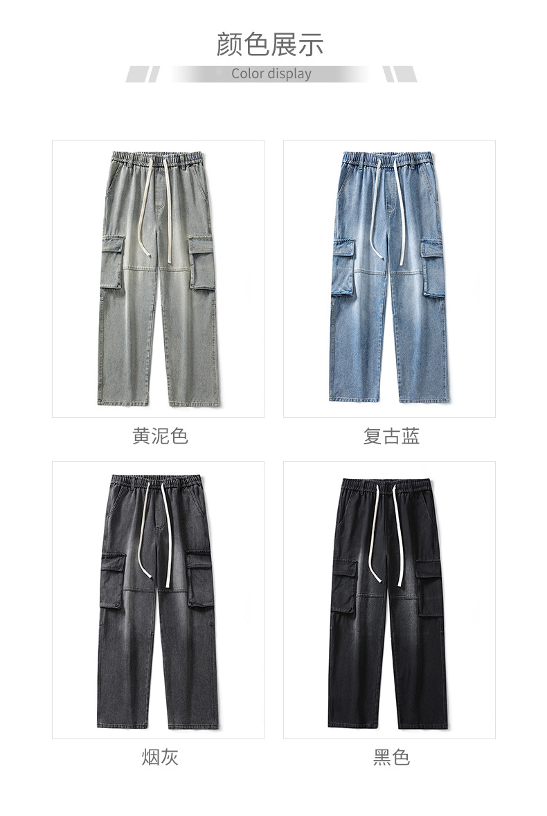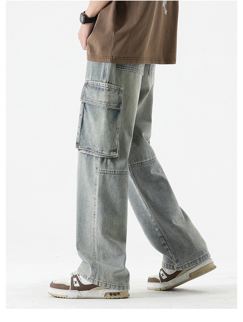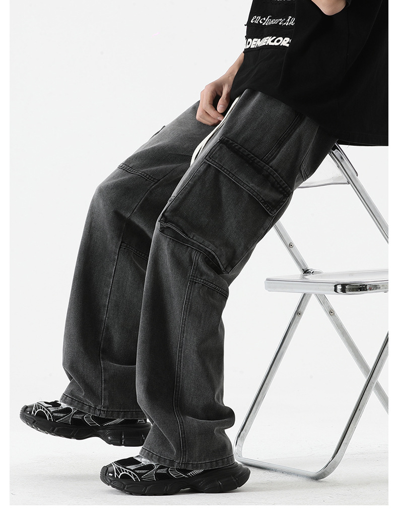 LKTM男装#日系复古多口袋拼接工装牛仔裤男ins潮牌宽松直筒阔腿裤