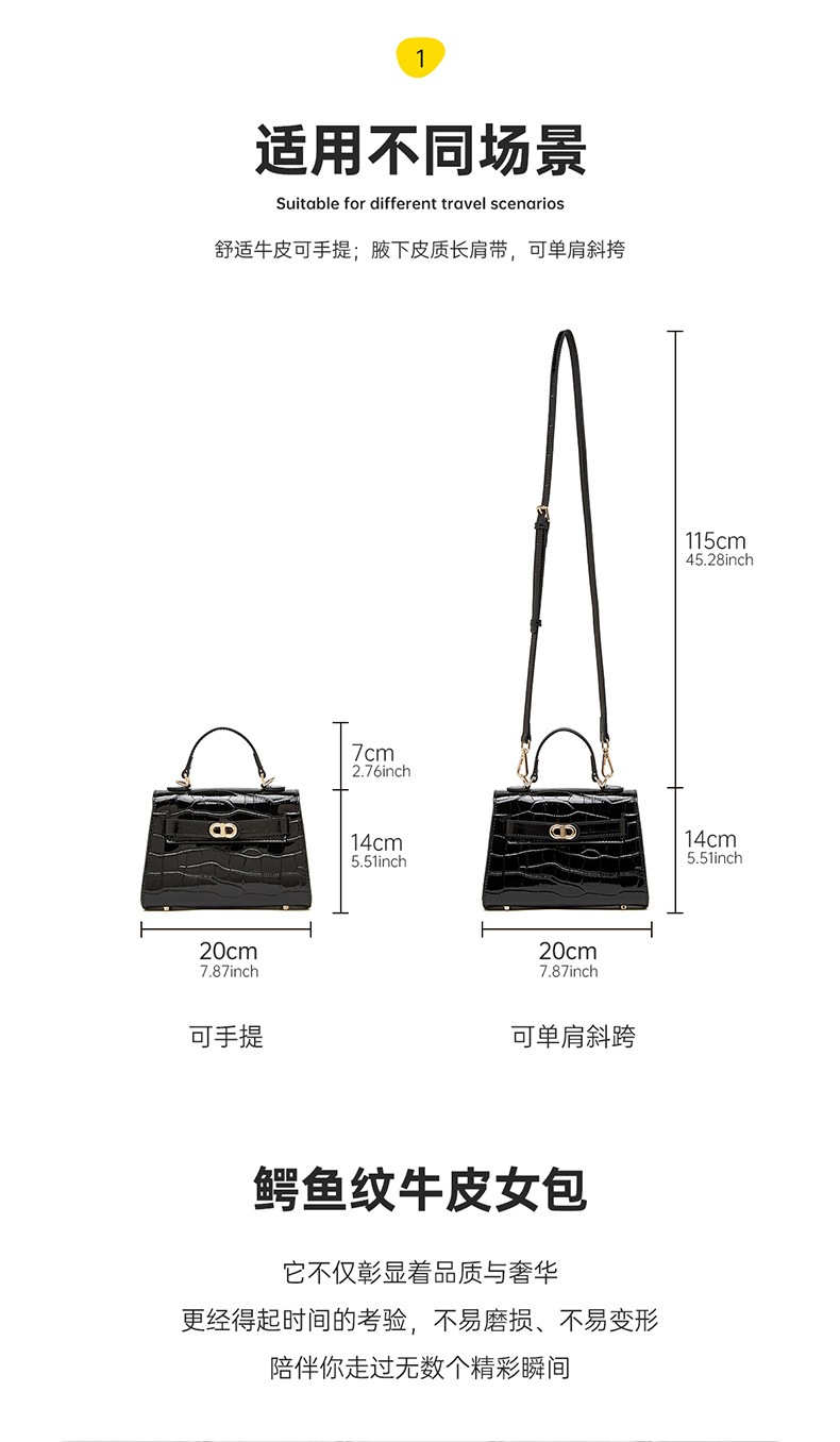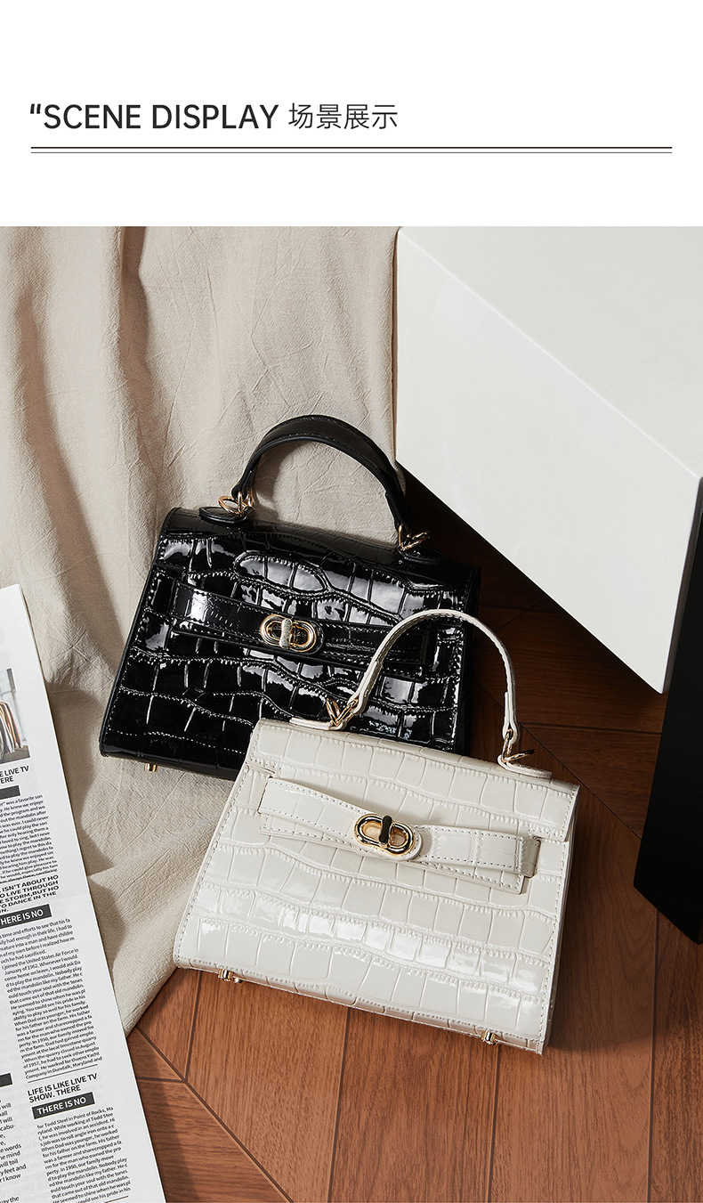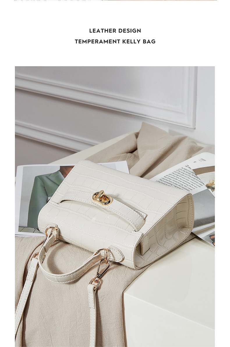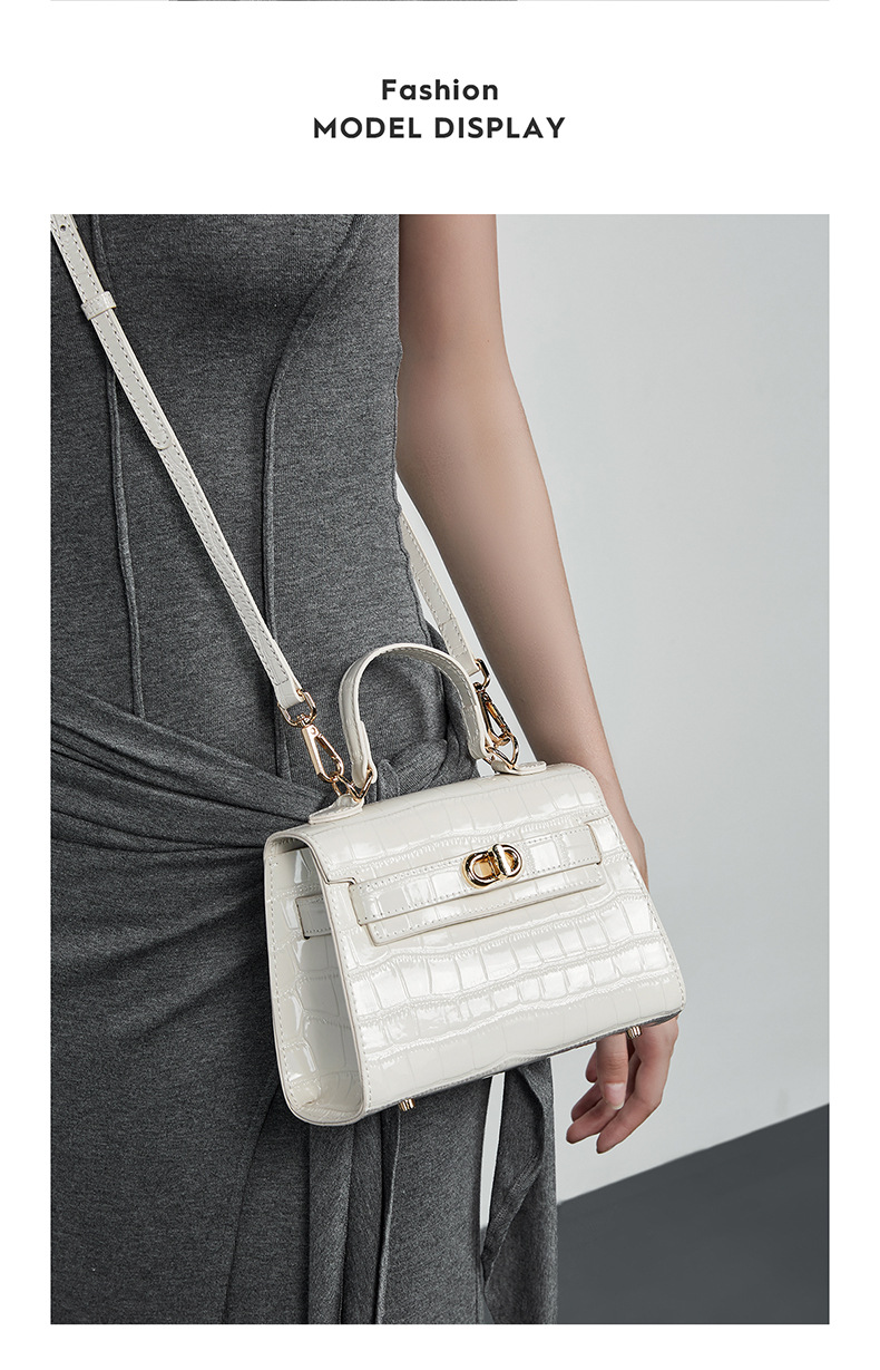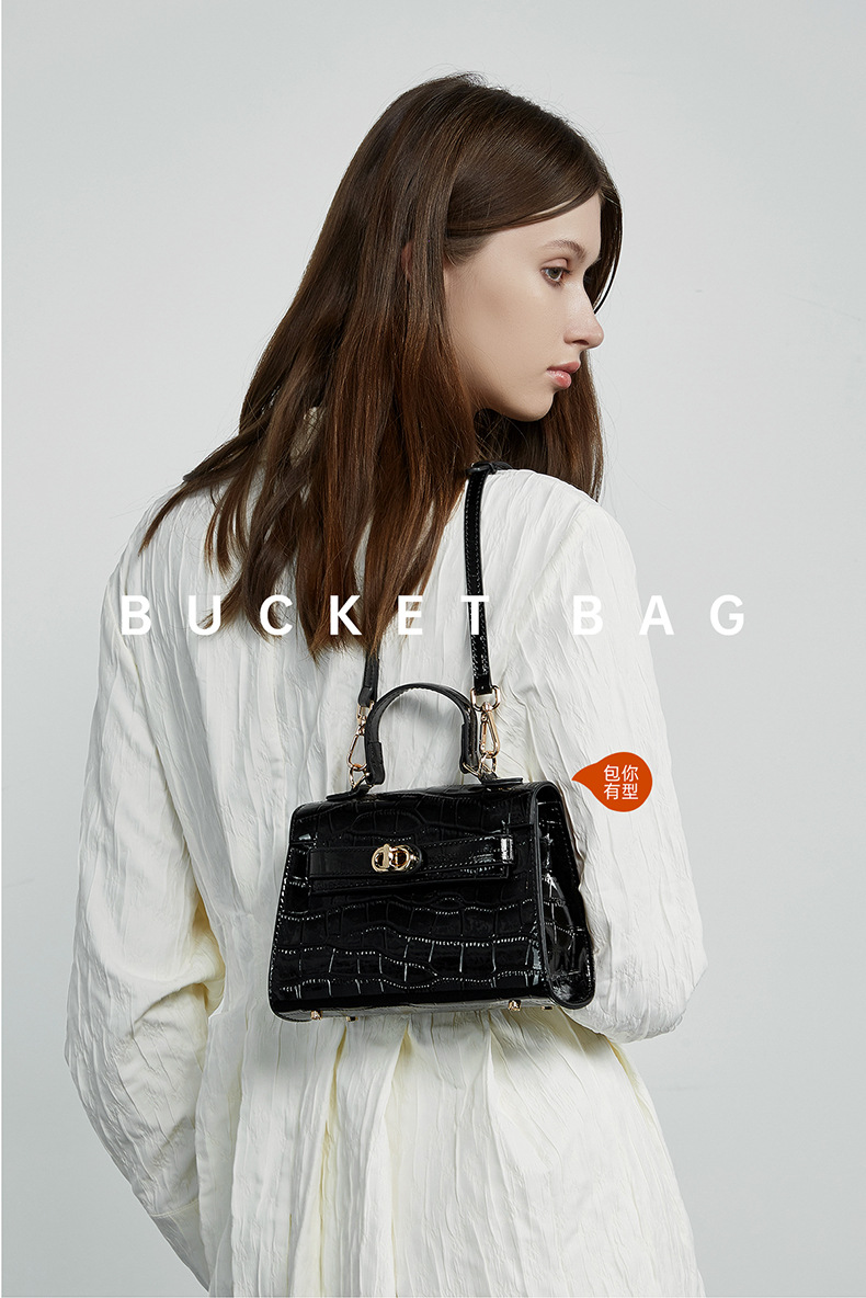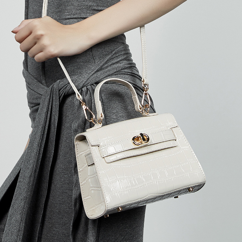 真皮小众斜跨包包女式夏季新款通勤时尚鳄鱼纹凯利包手提女包