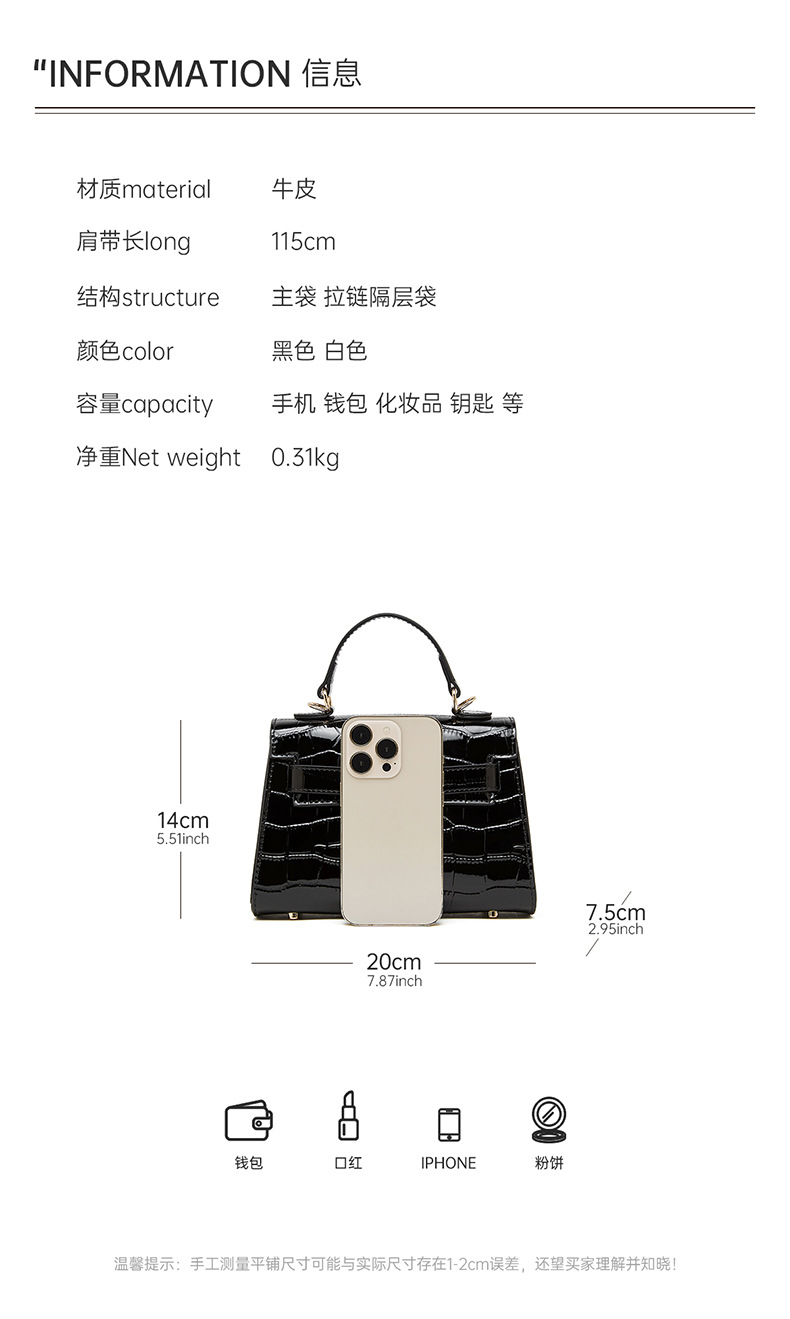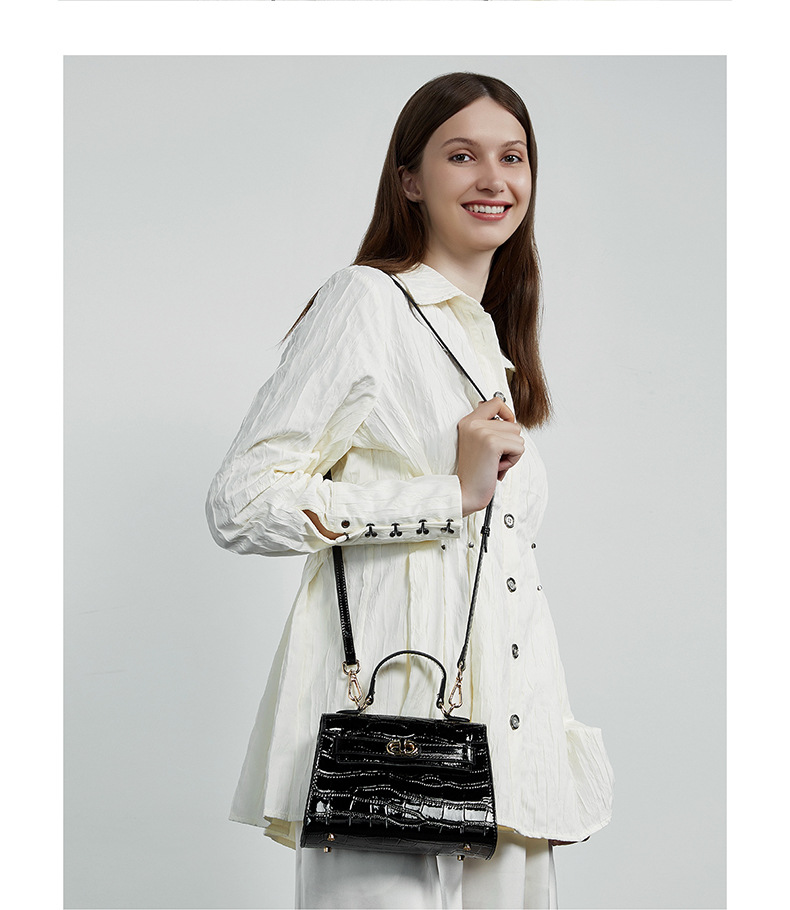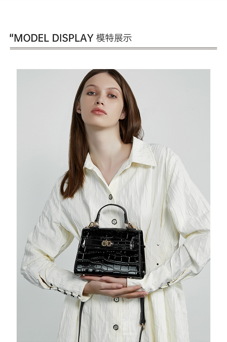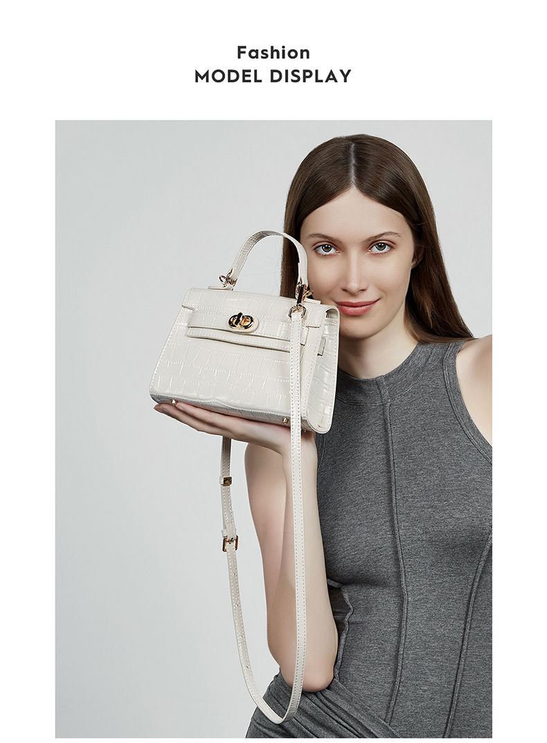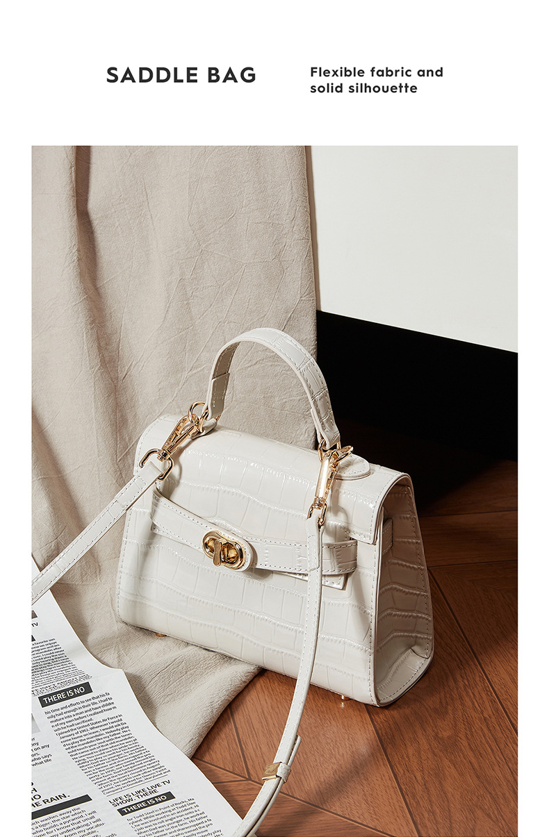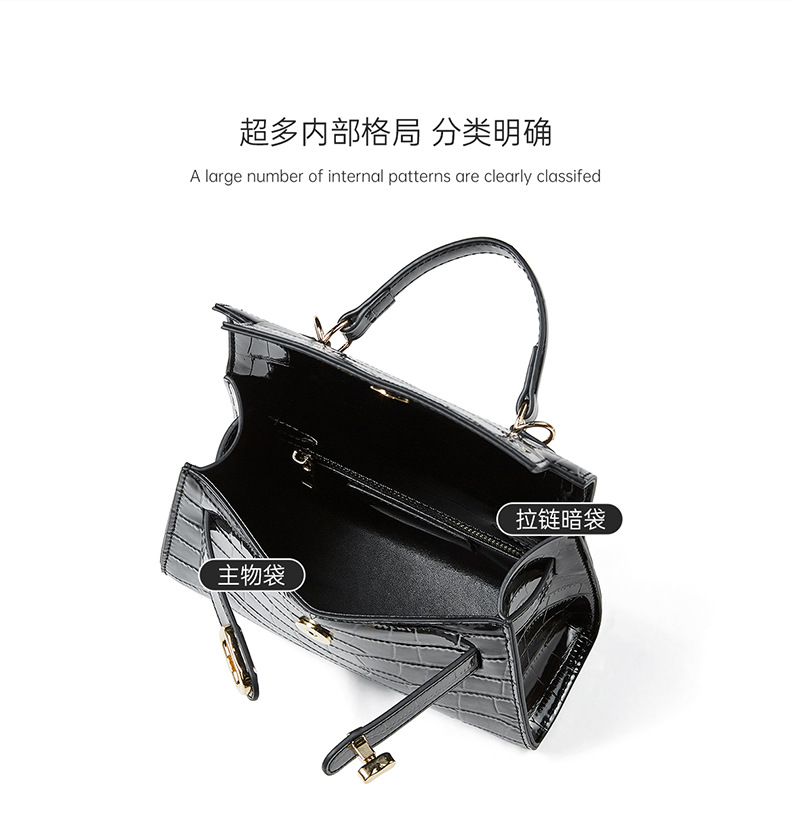 真皮小众斜跨包包女式夏季新款通勤时尚鳄鱼纹凯利包手提女包