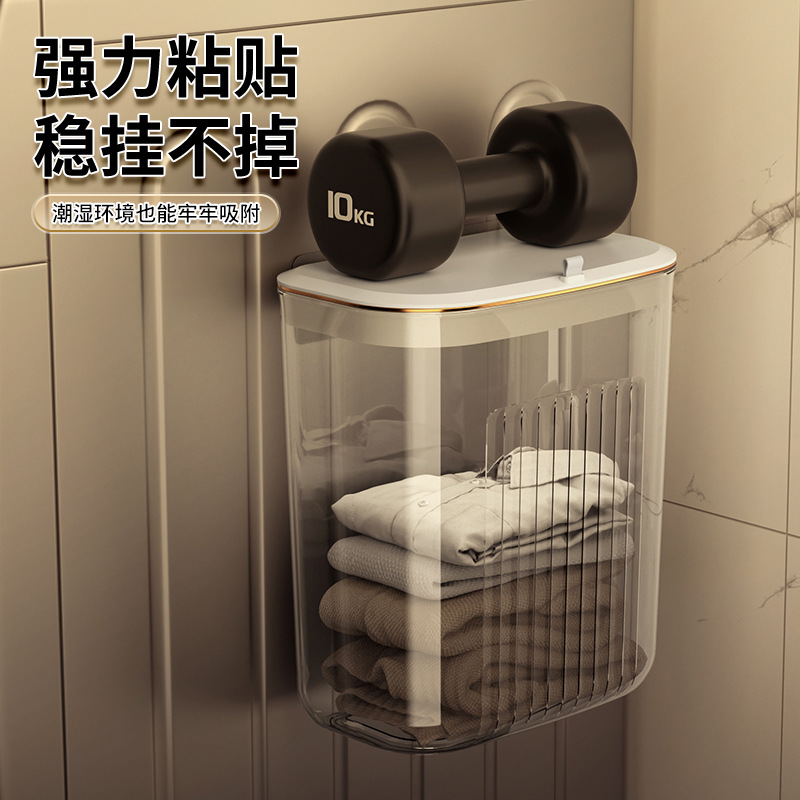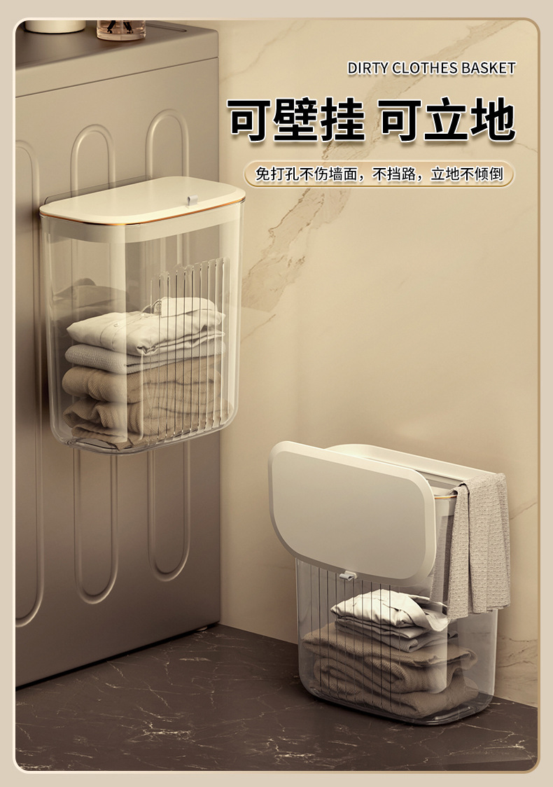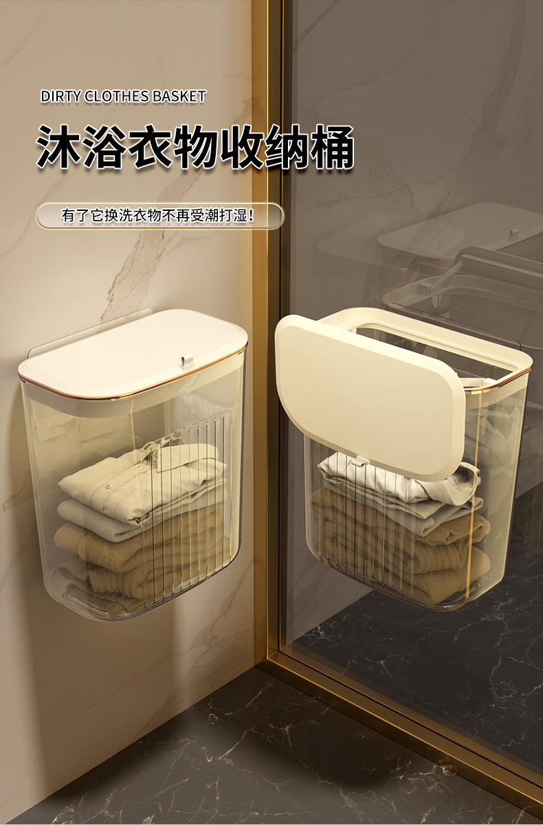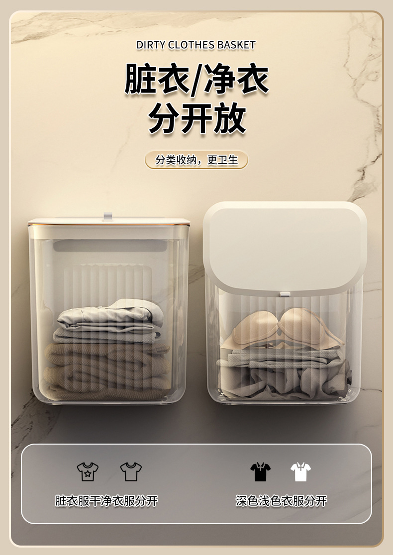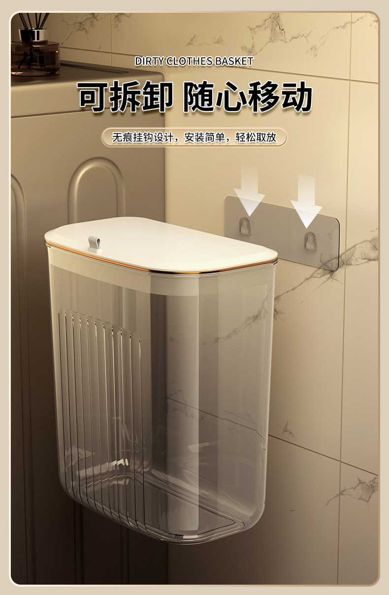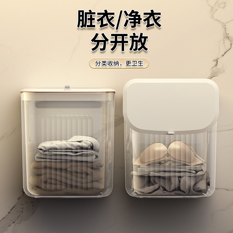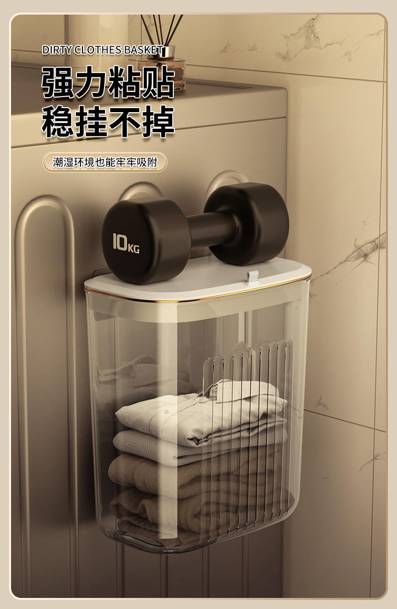 带盖脏衣篮挂墙免打孔轻奢脏衣篓浴室卫生间装放换洗衣透明收纳筐