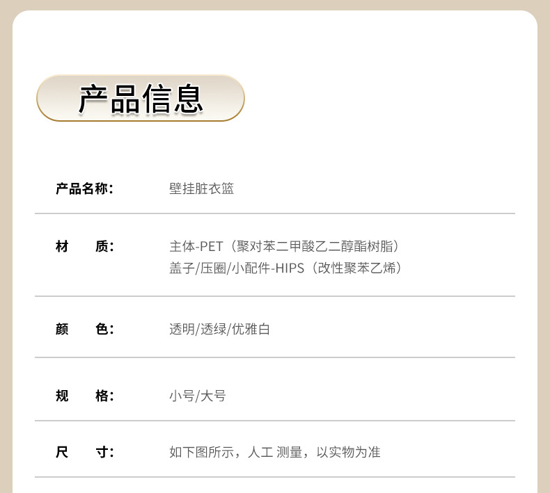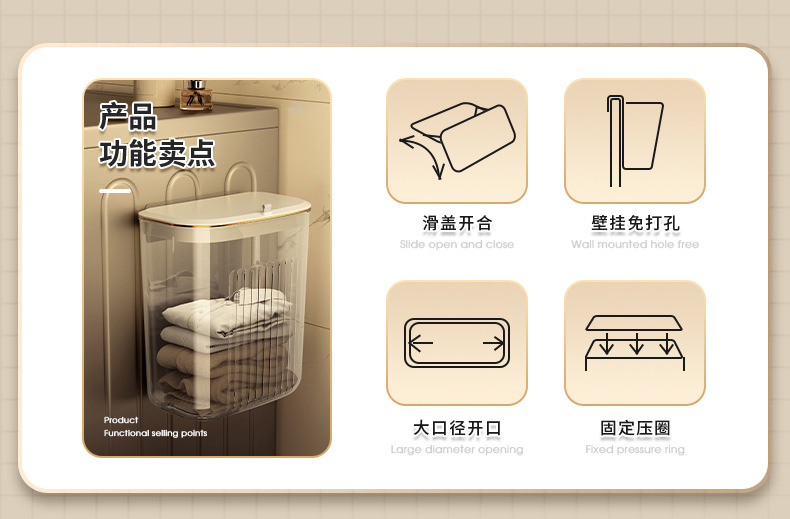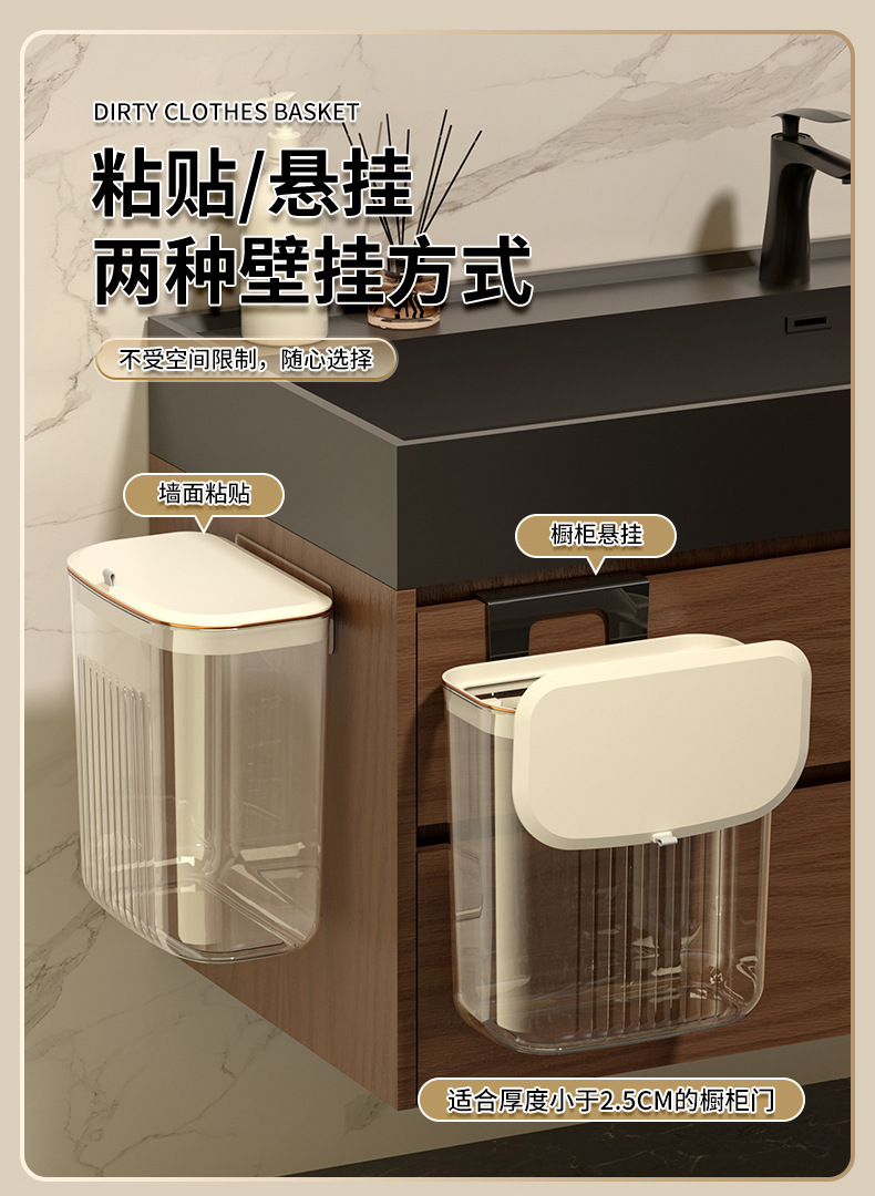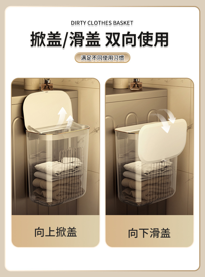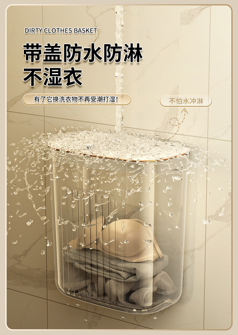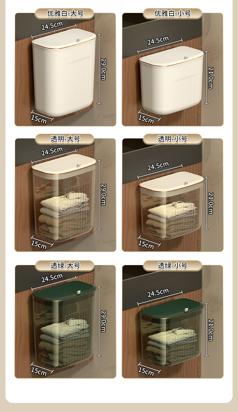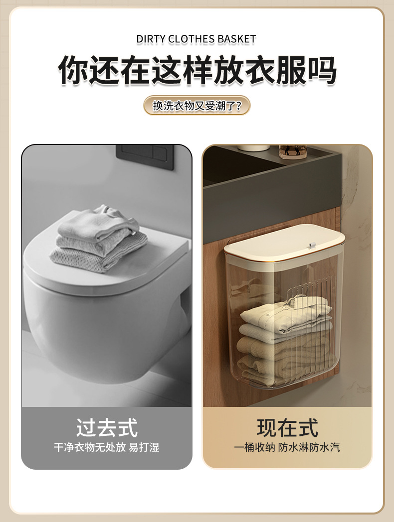 带盖脏衣篮挂墙免打孔轻奢脏衣篓浴室卫生间装放换洗衣透明收纳筐
