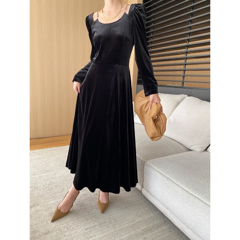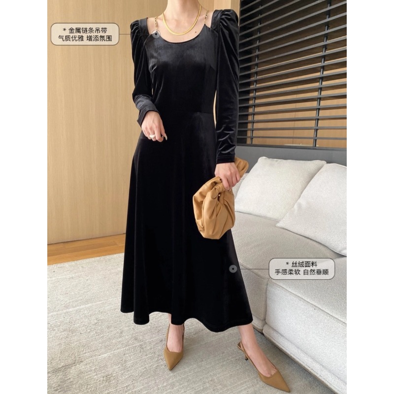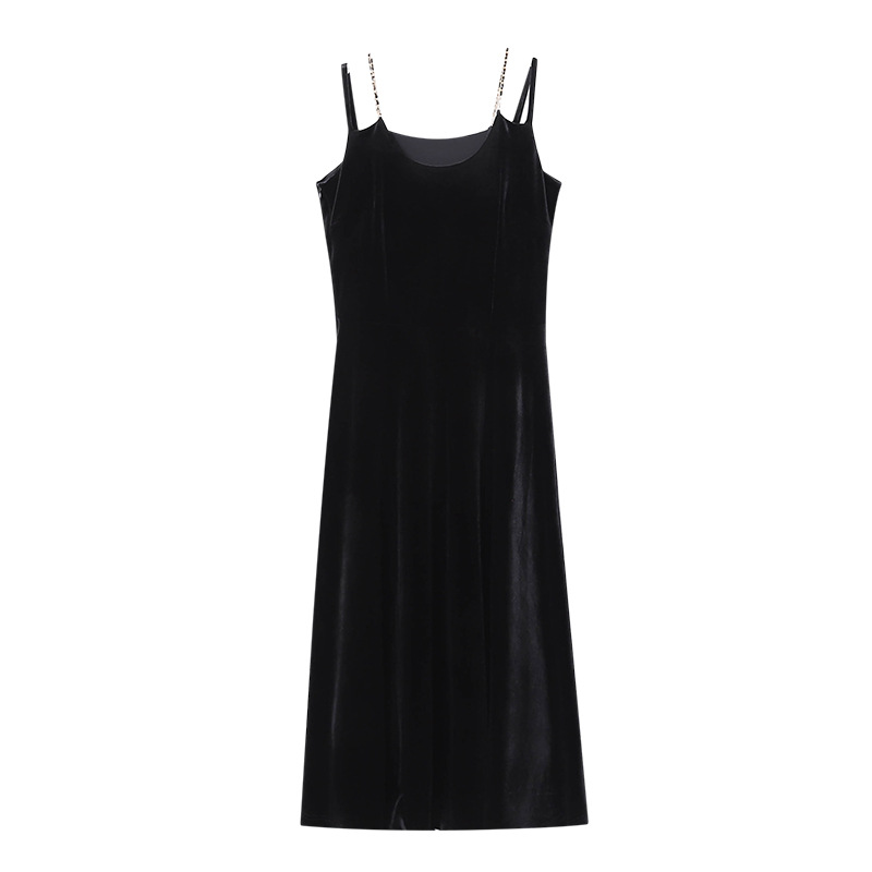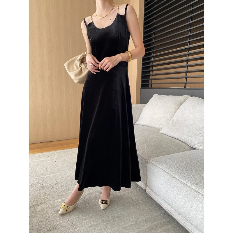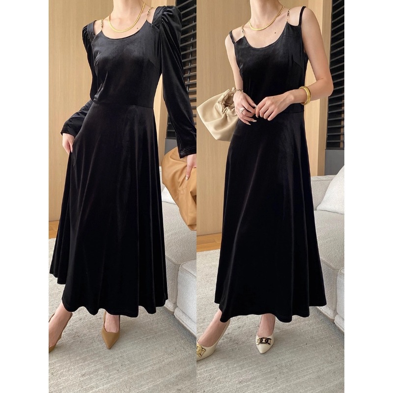 司南醋酸天丝黑丝绒长袖/吊带可选连衣裙秋冬新款
