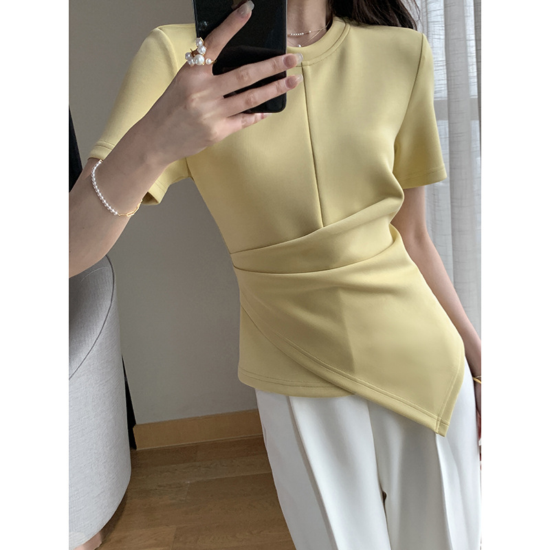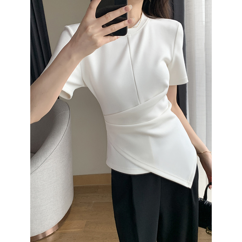 短袖T恤女年夏季新款别致百搭收腰气质正肩白色上衣