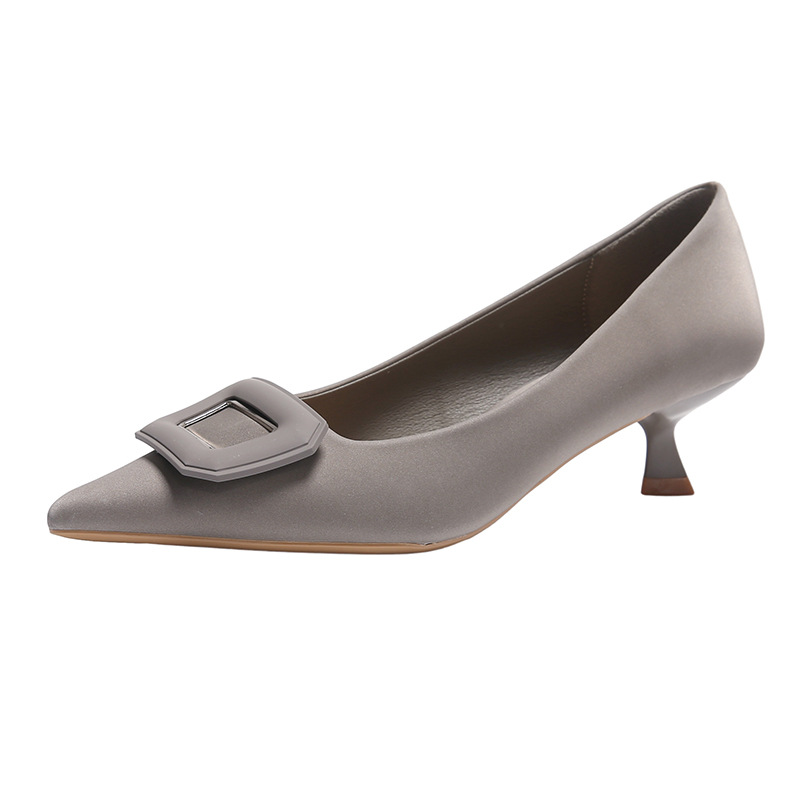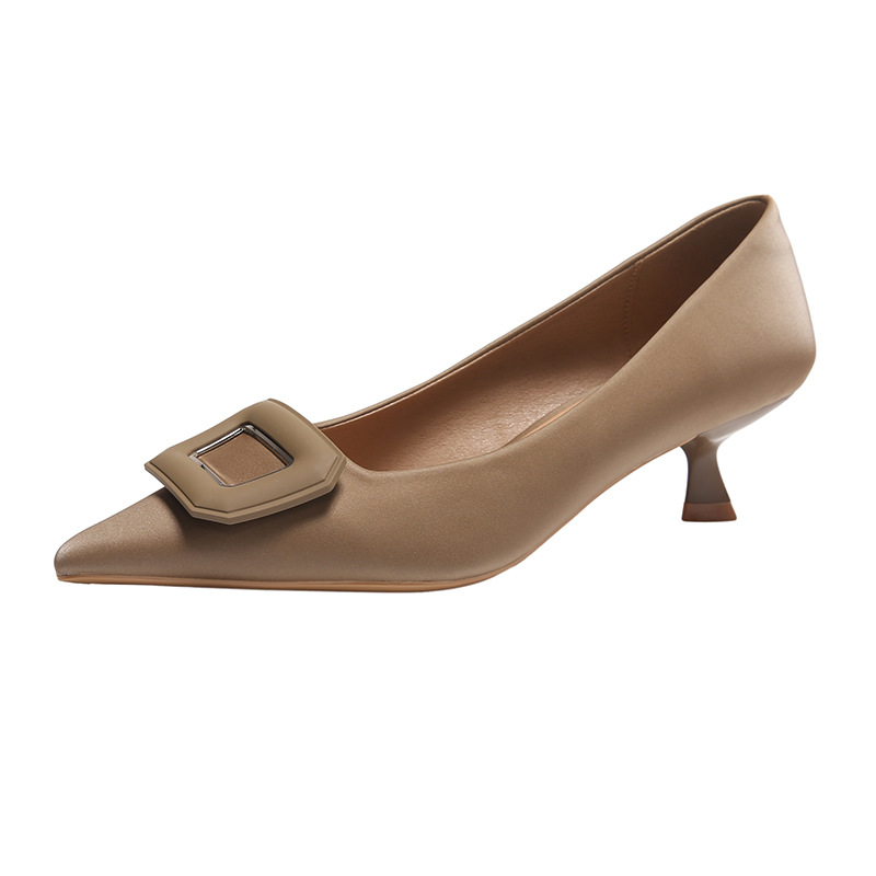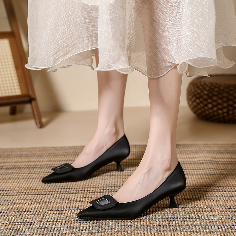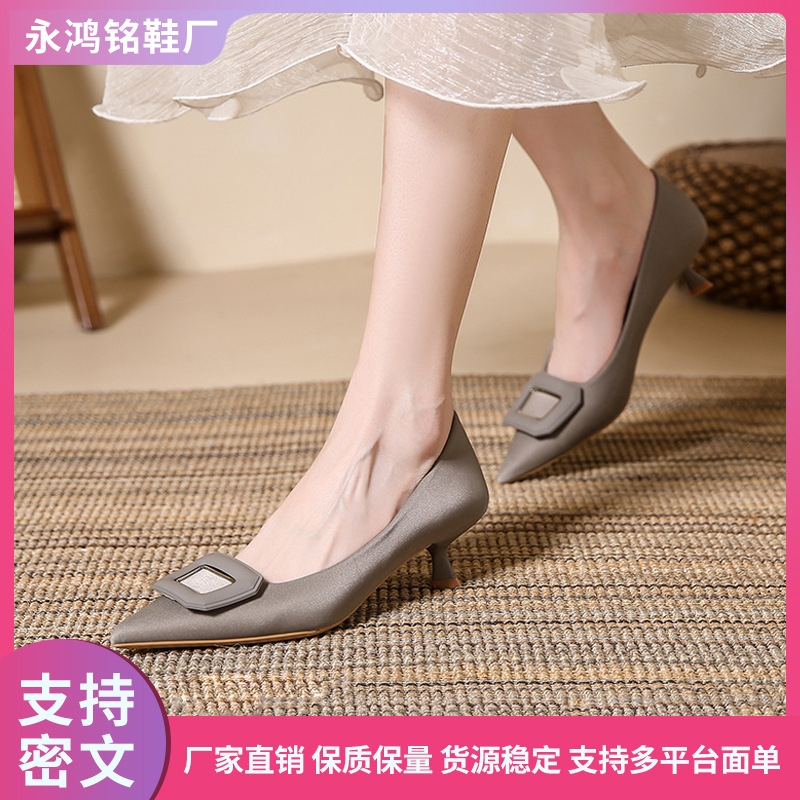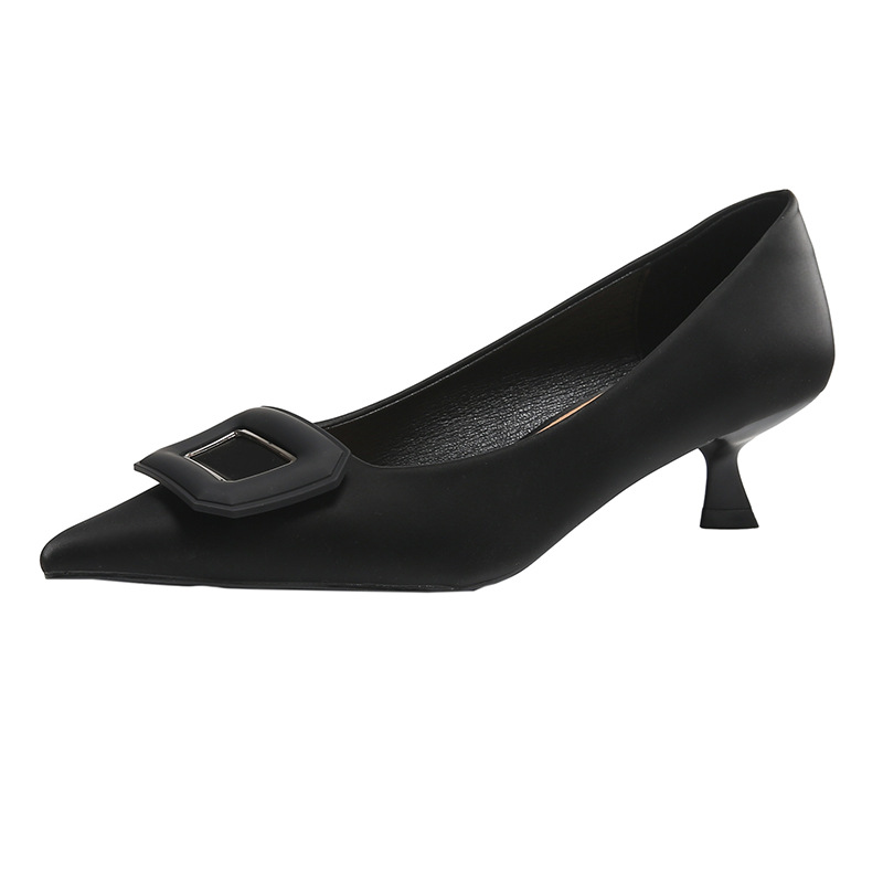 经典方扣尖头高跟鞋年秋款时尚浅口单鞋休闲职业OL工作女鞋子