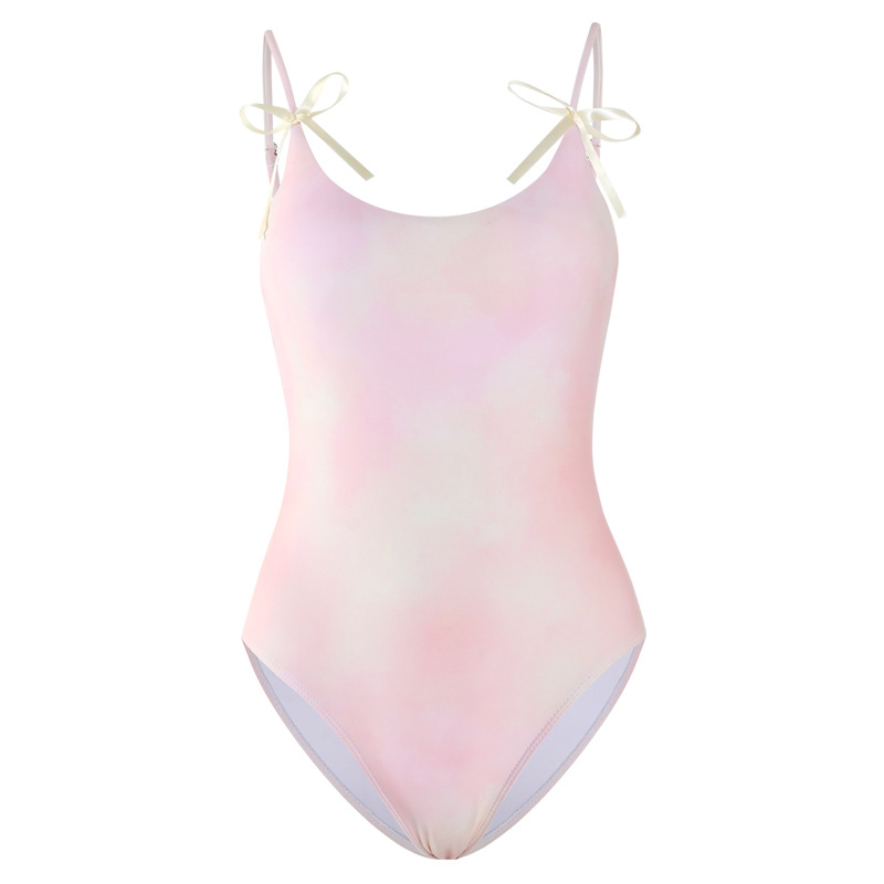 新款热销泳衣女清新俏皮性感吊带高级纯欲化蝶结连体三角沙滩泳装