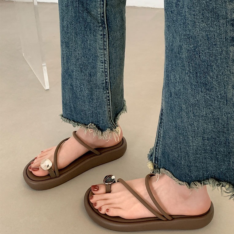 网红超火小香风夹趾平底拖鞋女夏外穿新款轻便高级感沙滩凉拖