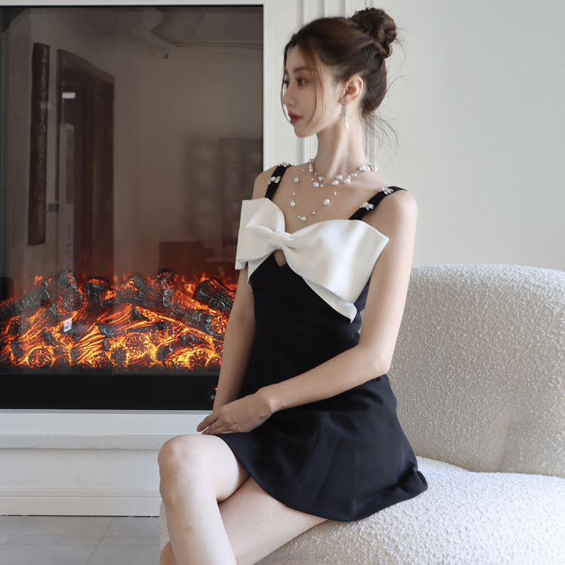 赫本风高级感生日小礼裙法式气质名媛蝴蝶结独特超好看吊带连衣裙