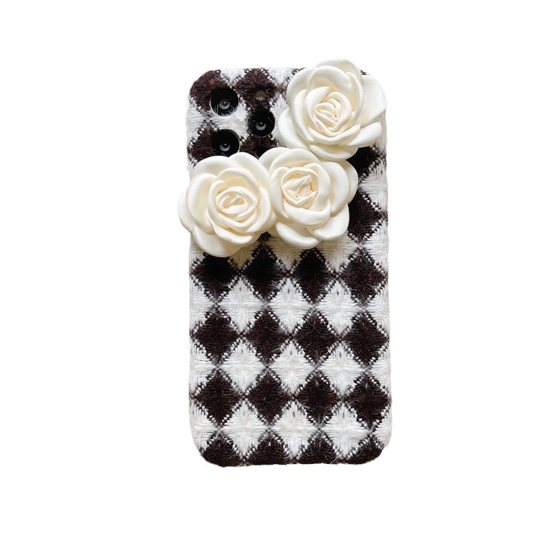 秋冬绒布款菱格适用iPhone16promax苹果15手机壳14保护套13花朵12