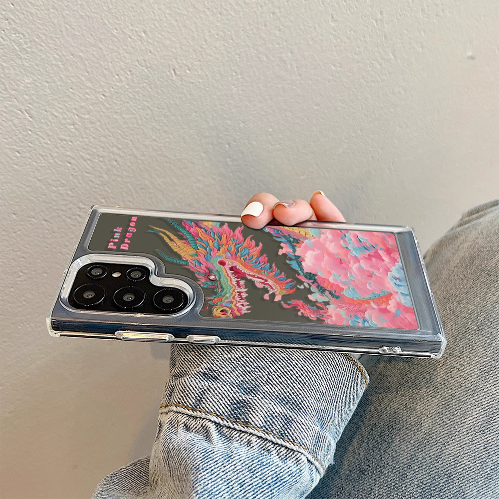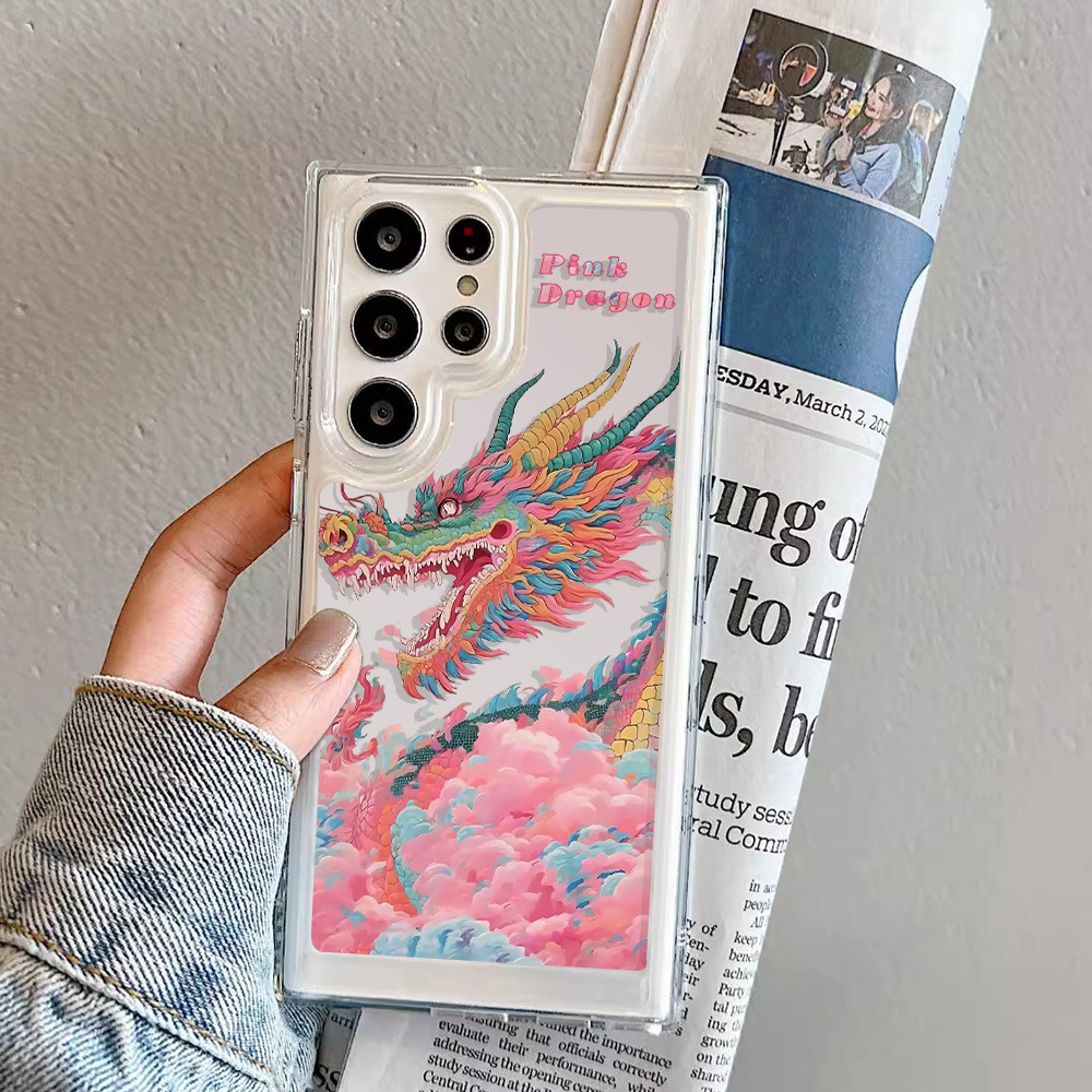 粉色中国龙S24Ultra手机壳S21FE新款S24Plus卡通S24软S23Plus