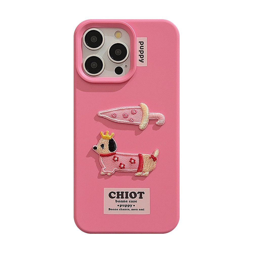 刺绣腊肠狗适用苹果15promax手机壳iphone16立体14甜酷卡通13防摔
