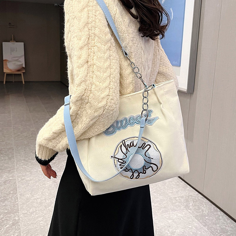ins原创字母印花帆布女包外出休闲百搭单肩斜挎包学生上课补习袋