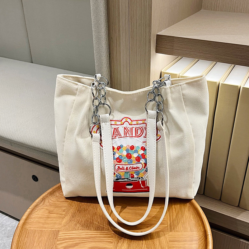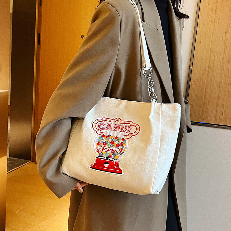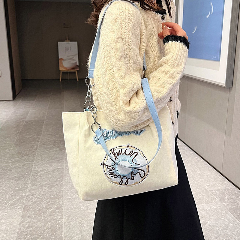 日系简约字母单肩手提帆布袋ins韩学生上课包小众百搭手提托特包