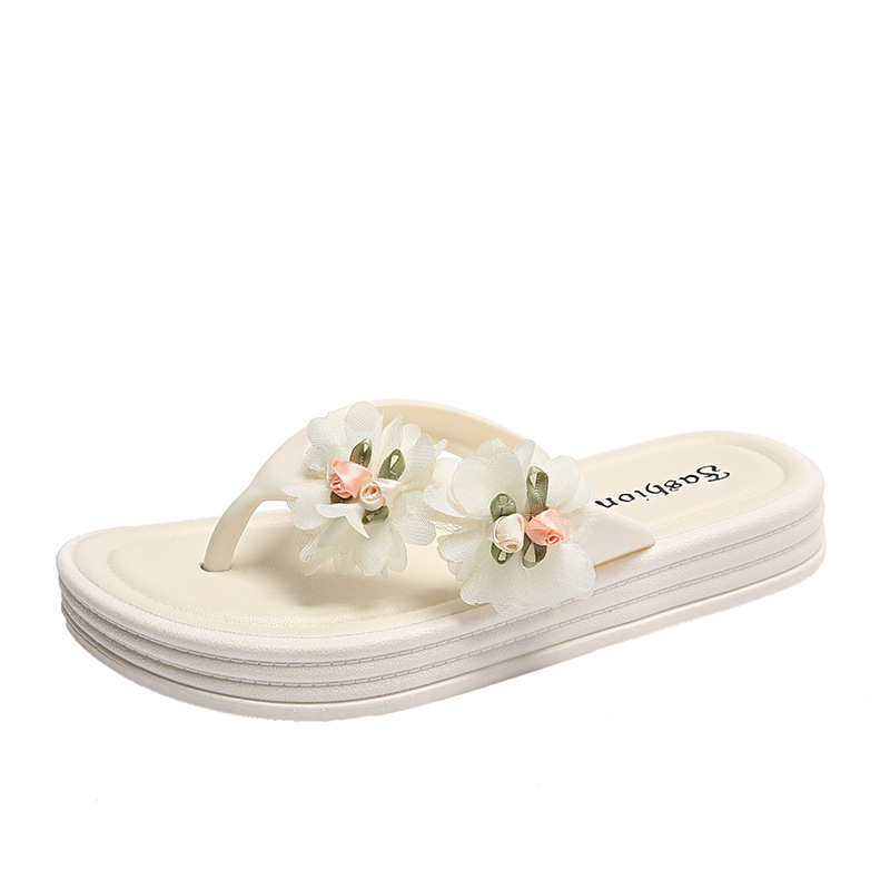 布花花朵人字拖鞋女士夏外穿时装耐磨防滑平底夹脚夹板鞋沙滩鞋女