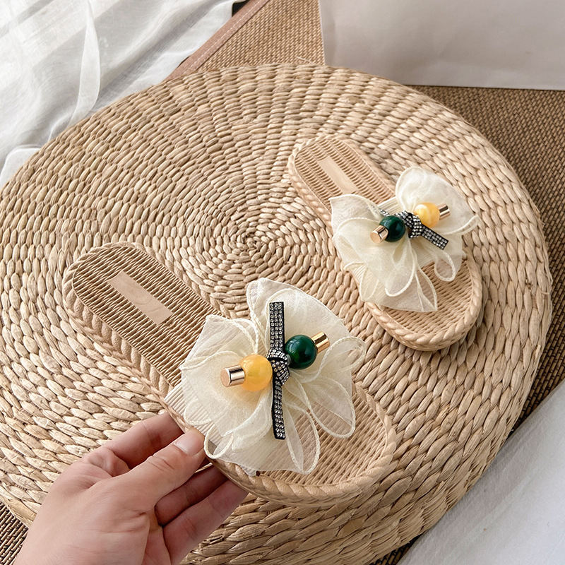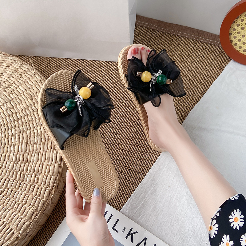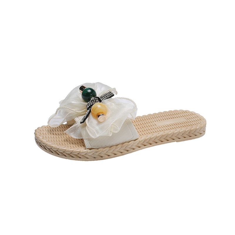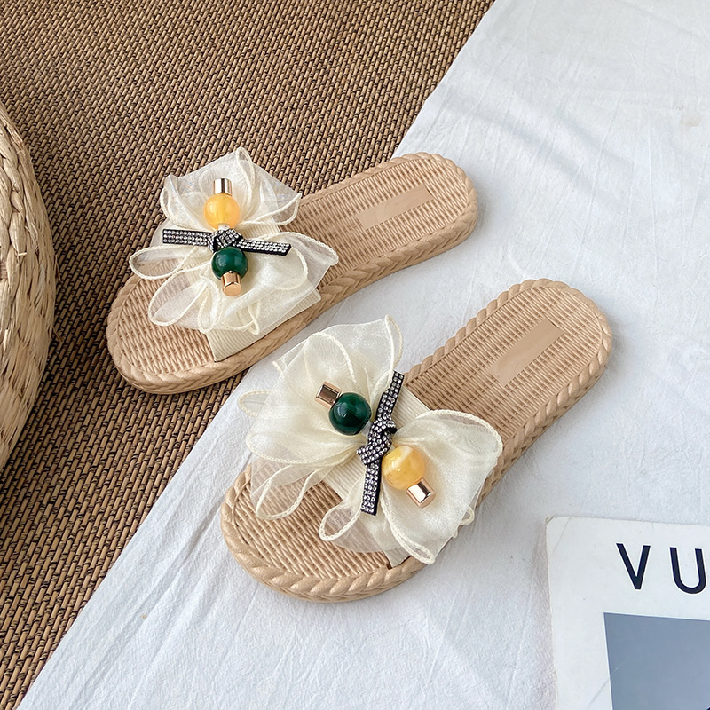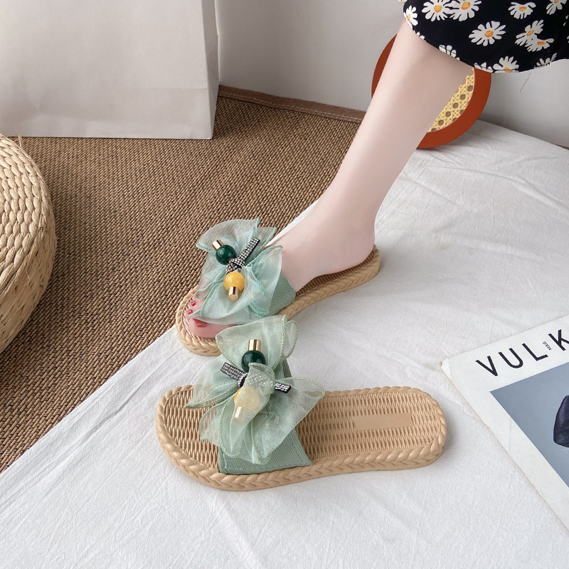 凉拖女夏季新款仙女风蝴蝶结外穿度假沙滩平底一字拖拖鞋女