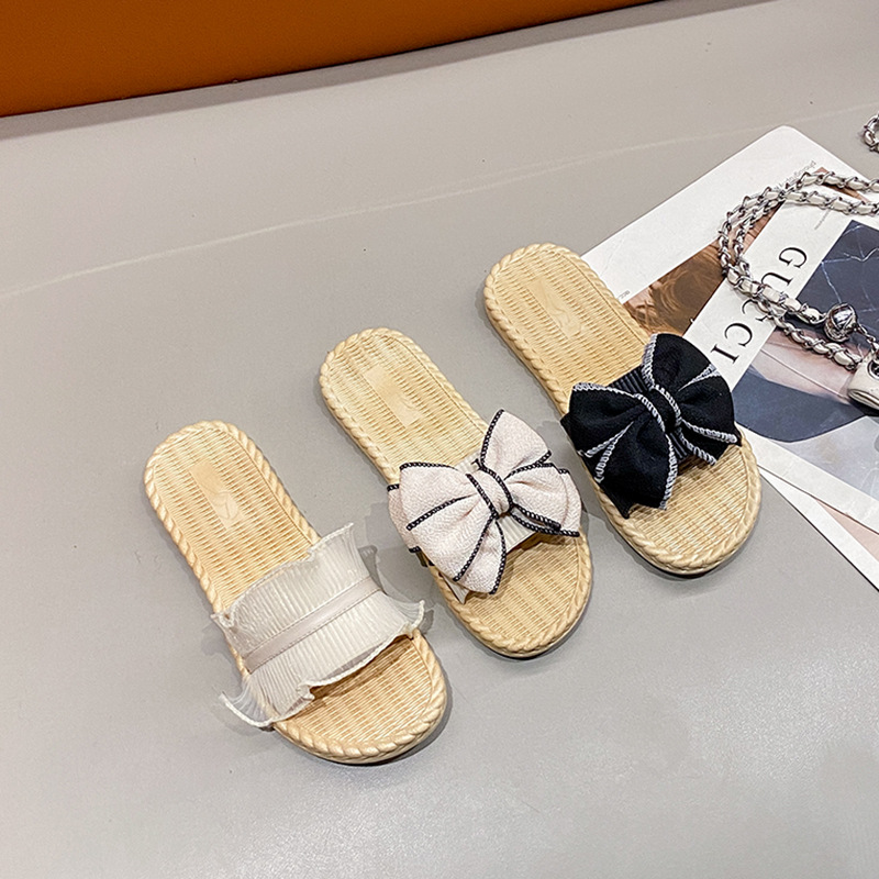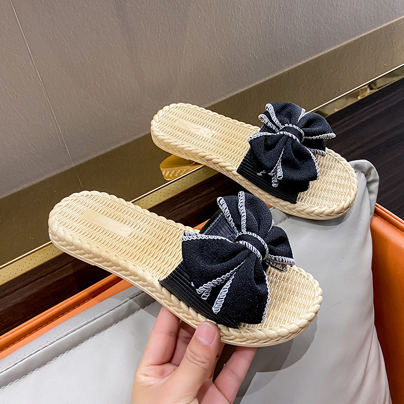 平底一字拖外穿轻便凉拖女设计感时尚蝴蝶结夏季沙滩海边防滑凉拖