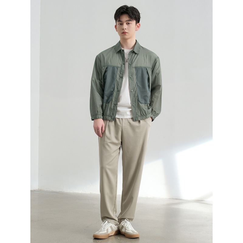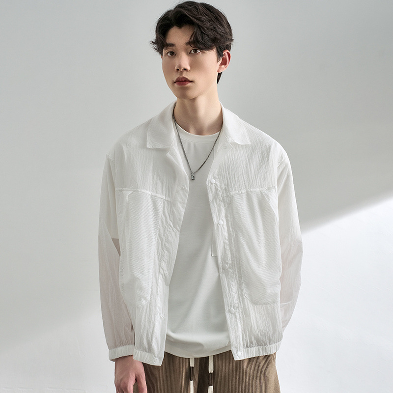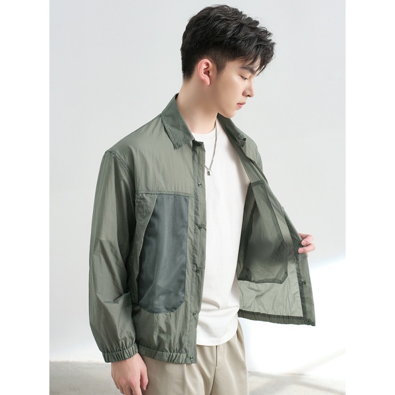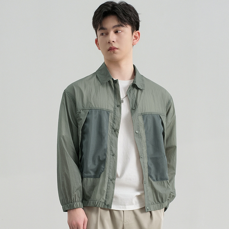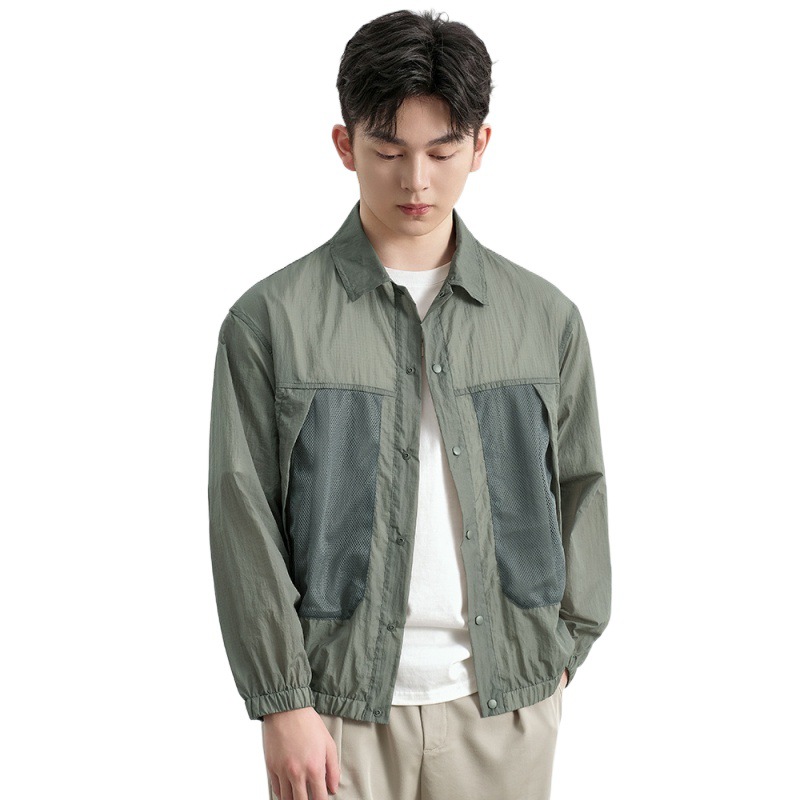 单层薄款防晒衣男夏季翻领休闲夹克网眼拼接透气夏装上衣