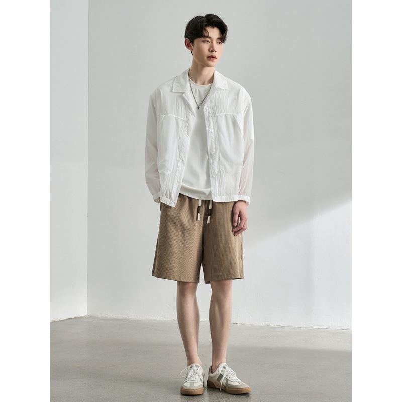 单层薄款防晒衣男夏季翻领休闲夹克网眼拼接透气夏装上衣皮肤衣男