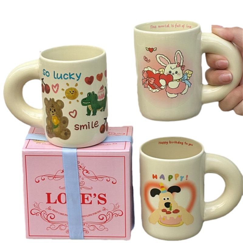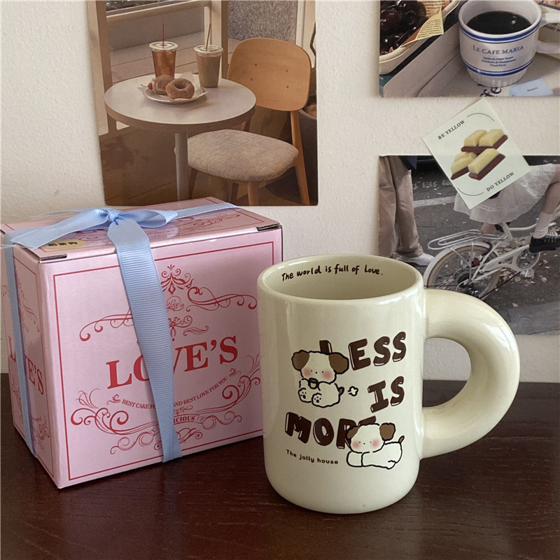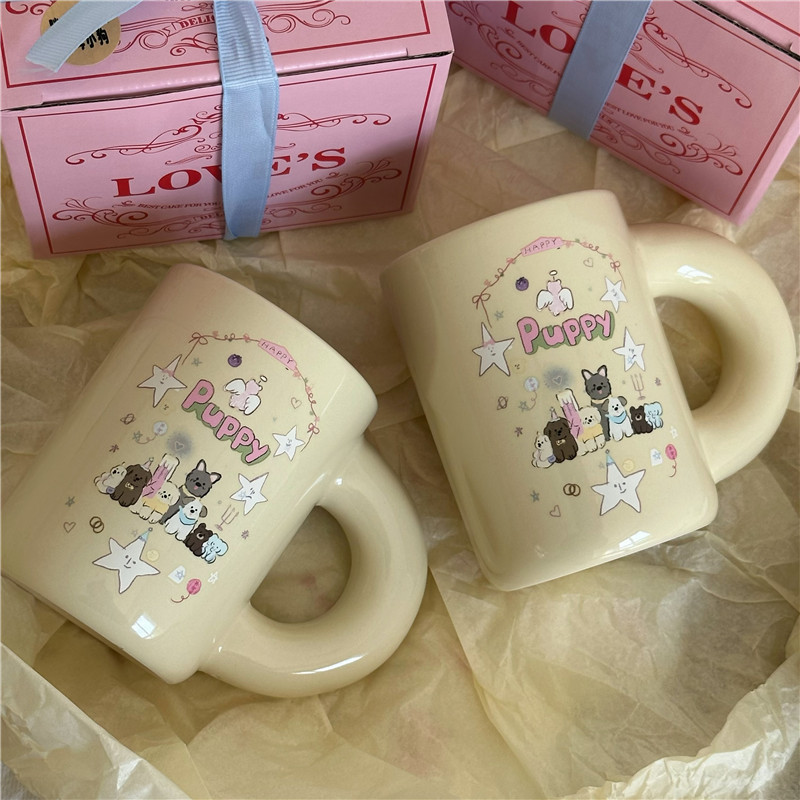 原创设计!可爱奶茶狗胖手柄马克杯少女心卡通马克杯礼盒装杯子