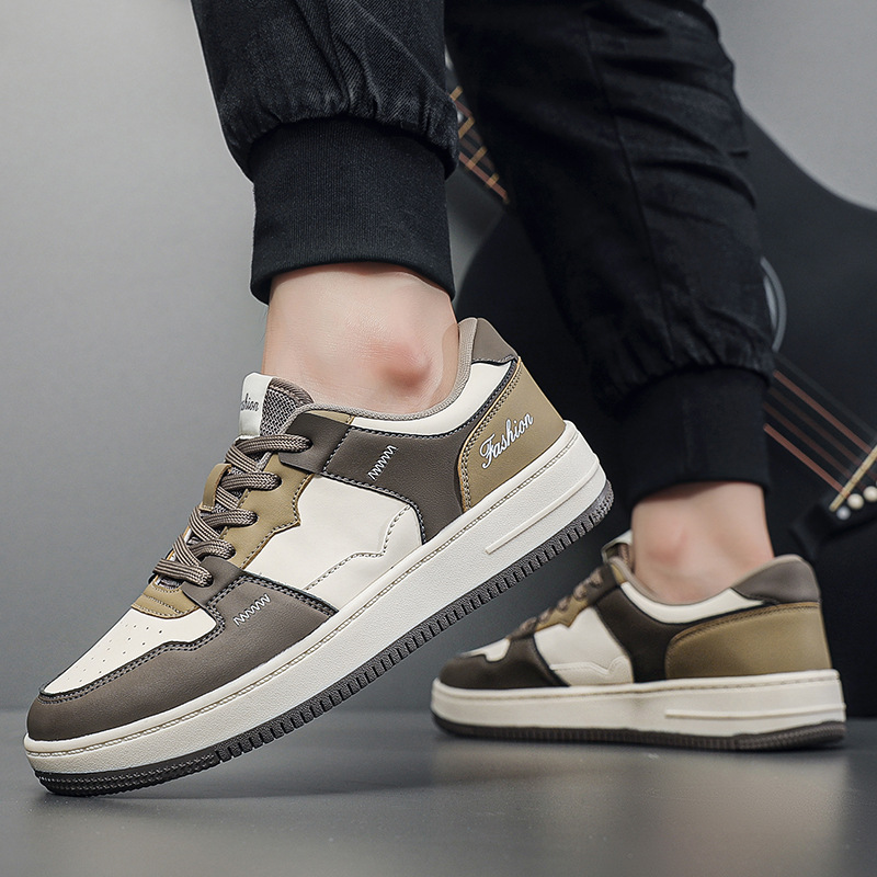 港风青少年时尚系带小白鞋跨境大码皮面低帮休闲板鞋四季学生潮鞋