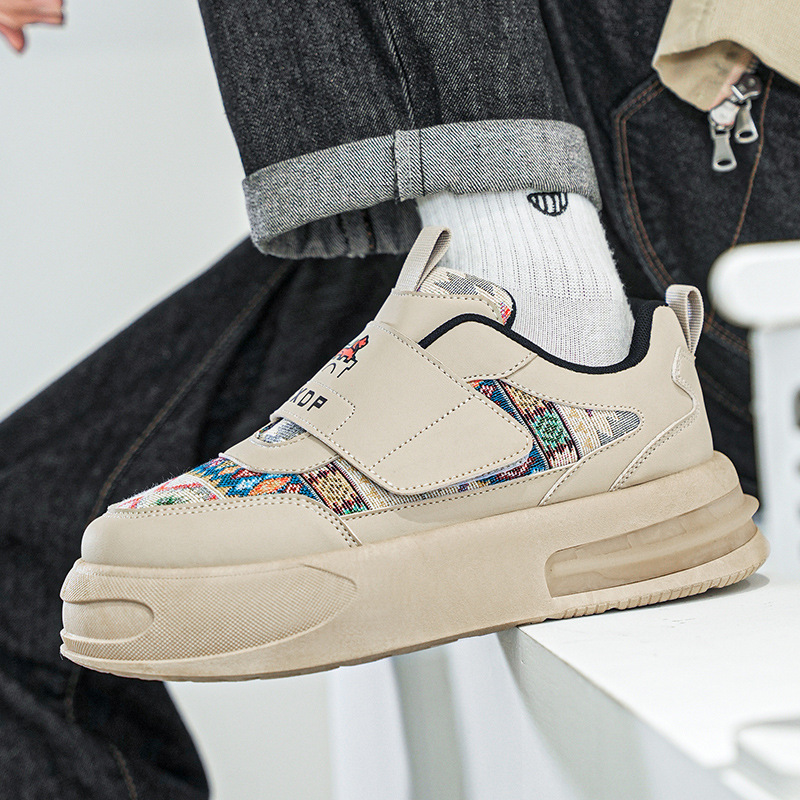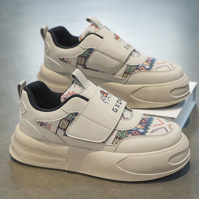 魔术贴男鞋新款秋季百搭休闲板鞋小众设计学生运动增高小白鞋