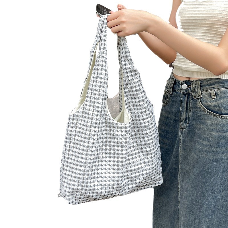 新款文艺气质女士腋下包包ins高级感帆布包时尚大容量格子单肩包