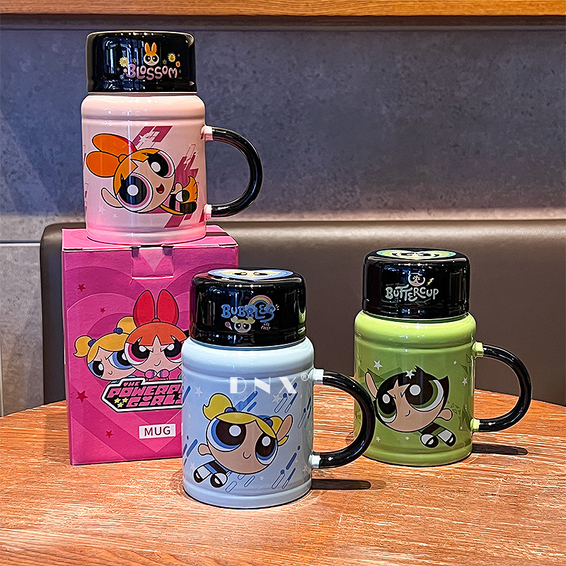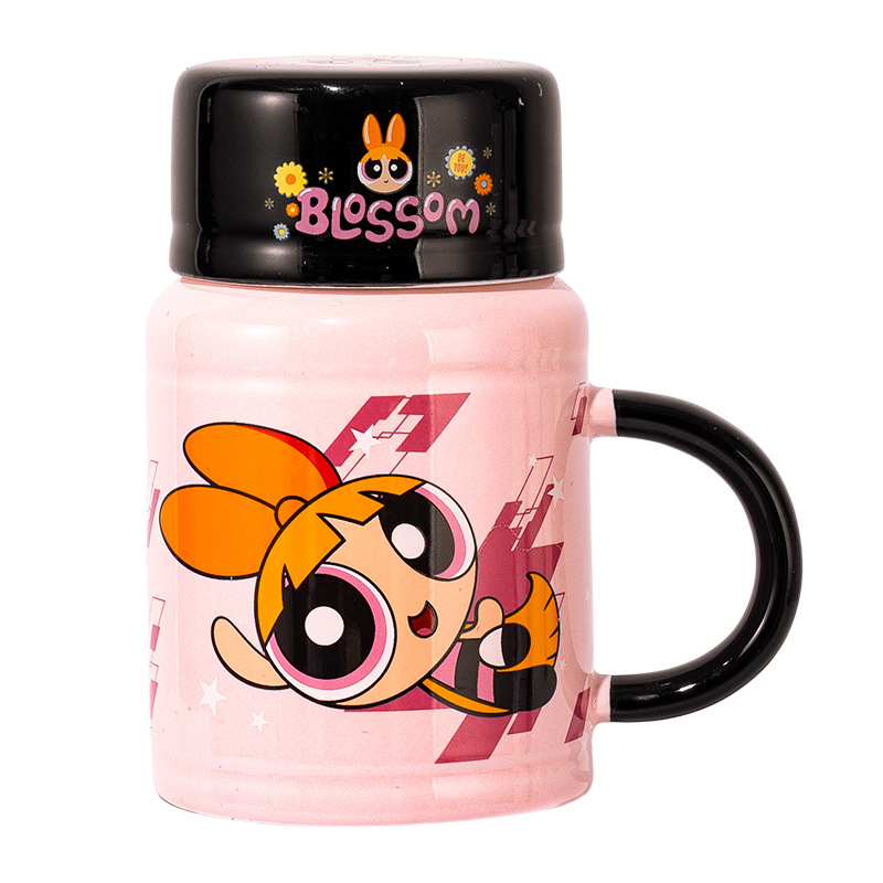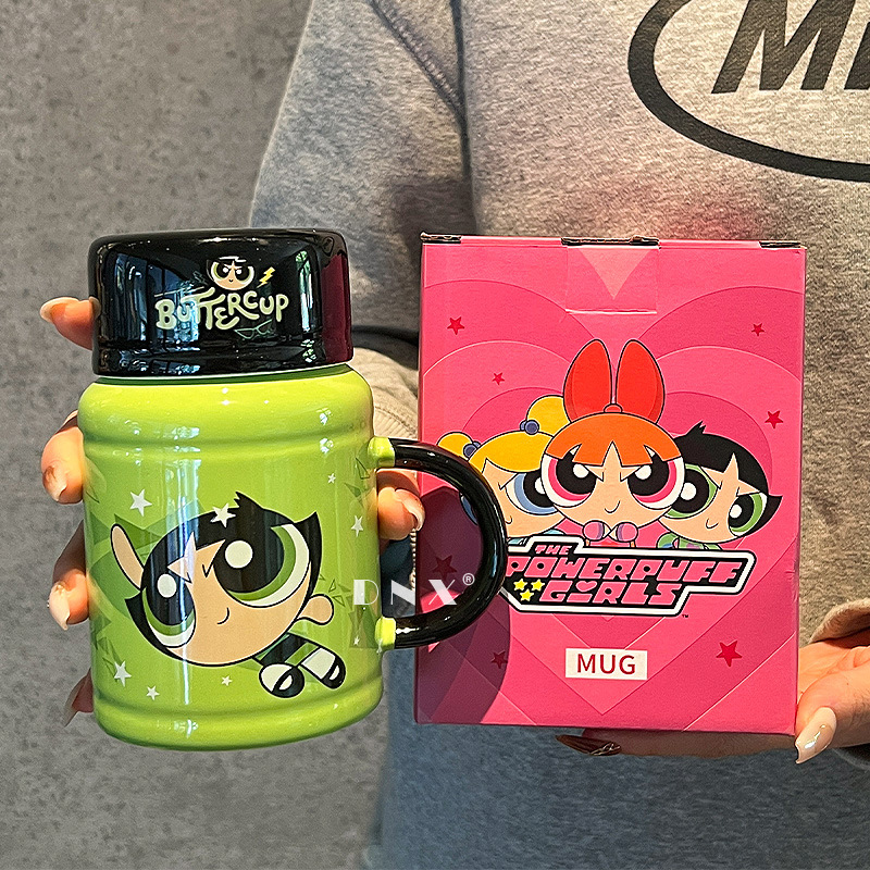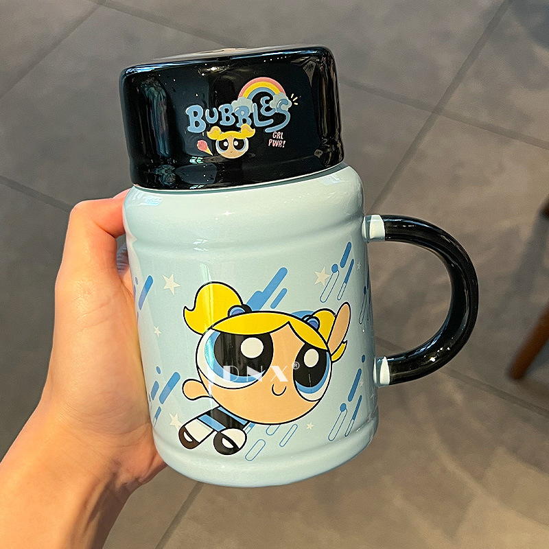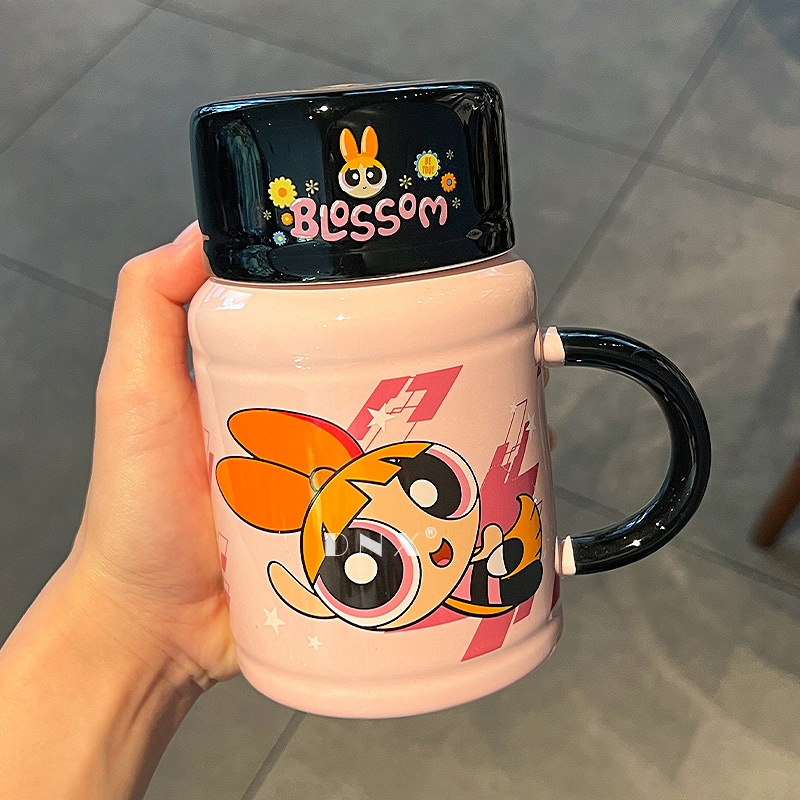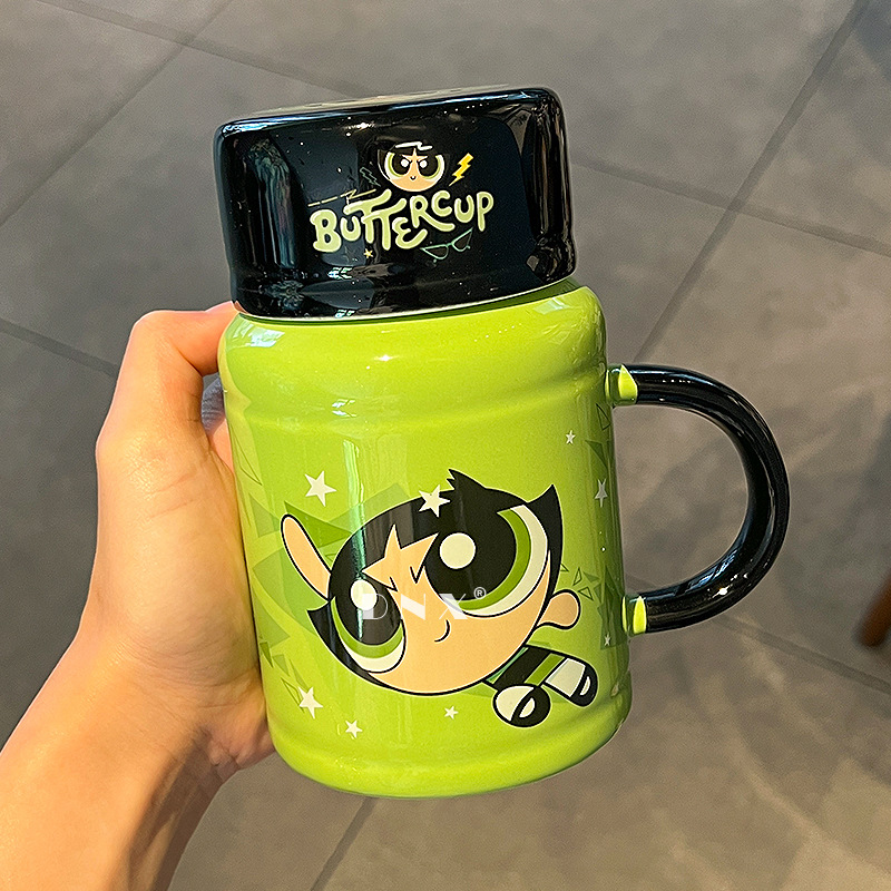 飞天小女警大容量可爱陶瓷杯卡通可爱家用办公室创意马克杯带盖杯
