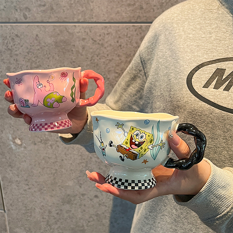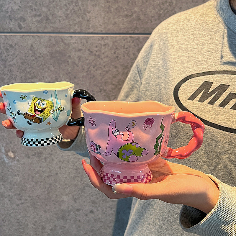海绵宝宝马克杯陶瓷高脚杯可爱杯子女情侣水杯家用儿童咖啡牛奶杯