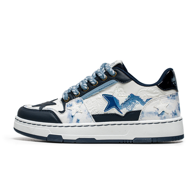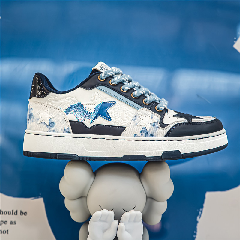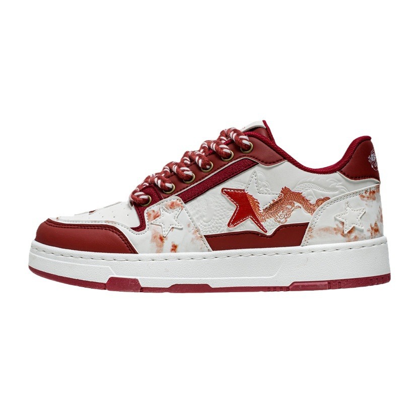 男四季透气龙年中国红低帮学生乐福鞋厚底港风直播星星压花板鞋男