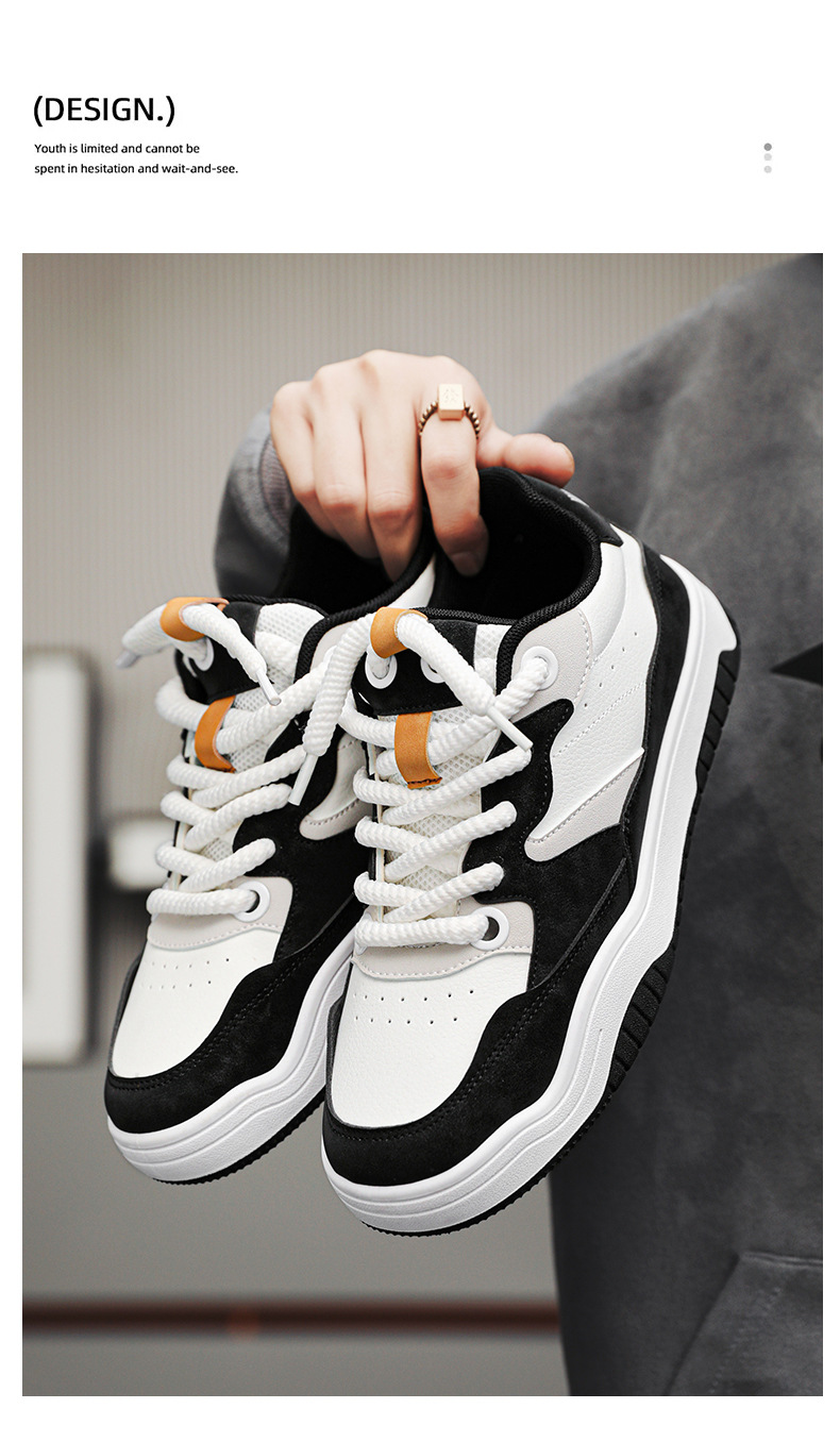 春季新款小众休闲板鞋学生户外厚底直播鞋皮面透气低帮走秀鞋