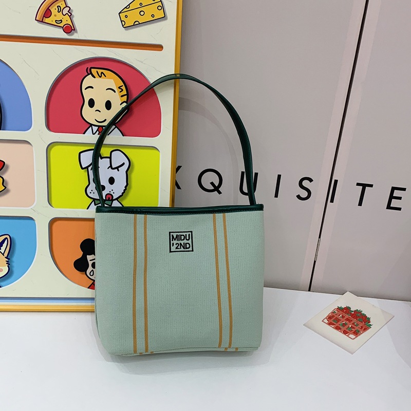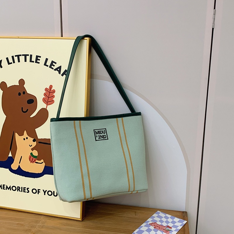 新款小众设计刺绣帆布包女通勤百搭单肩腋下包超火手提水桶包