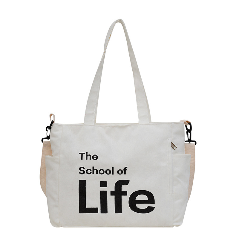ins原创字母印花帆布女包外出休闲百搭单肩斜挎包学生上课补习袋