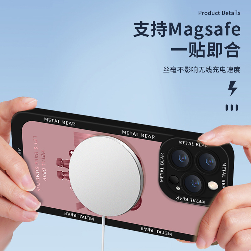 适用于苹果14手机壳液态硅胶iPhone13Pro潮牌创意金属熊12软壳