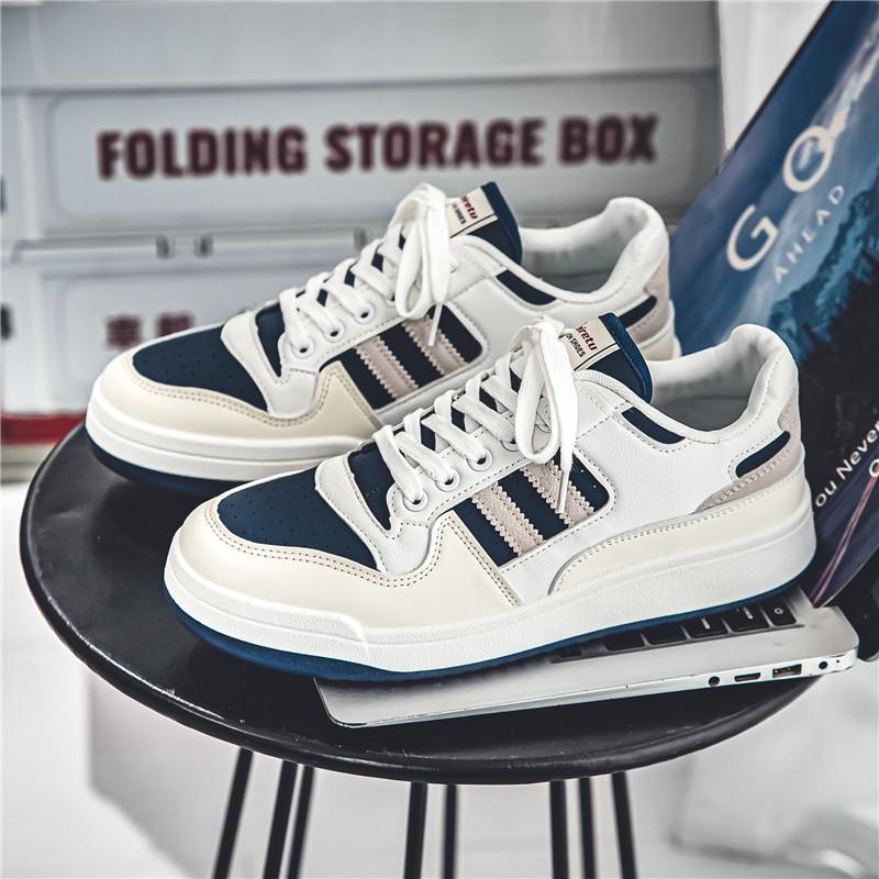 男鞋四季新款低帮板鞋男士休闲运动鞋子百搭青少年皮面小白鞋