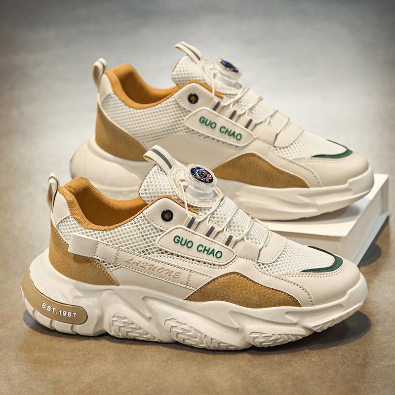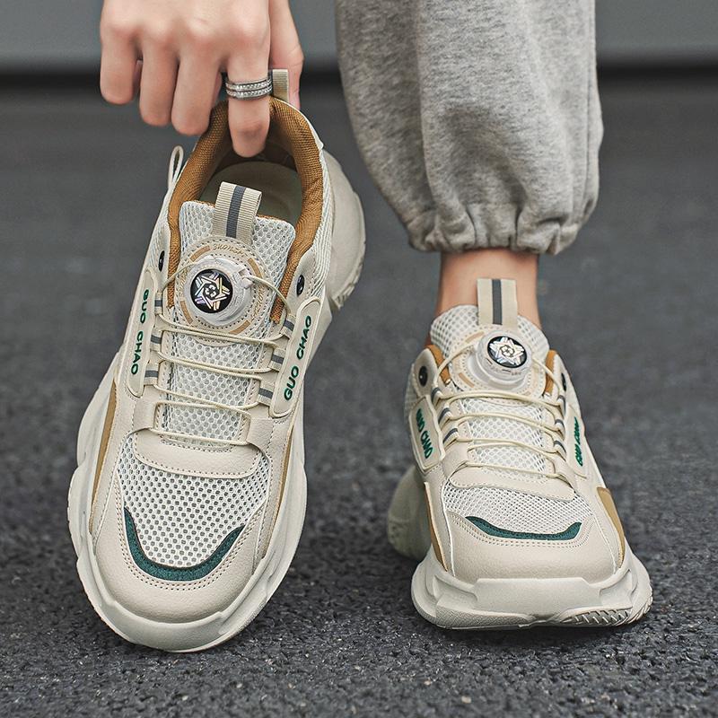 爆款男鞋夏季青少年耐磨厚底老爹鞋男士透气旋转纽扣增高运动潮鞋
