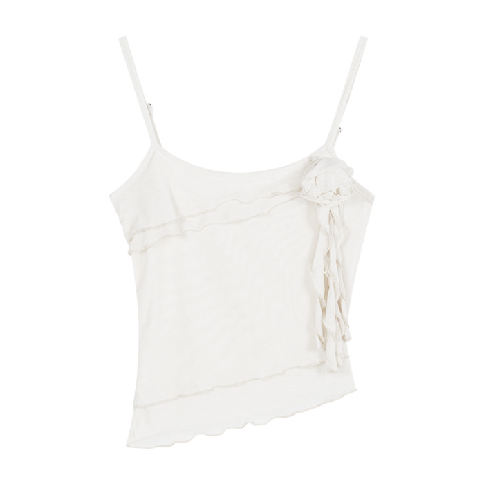 甜辣小上衣设计感网纱立体花朵白色背心吊带女夏季纯欲风外穿美背