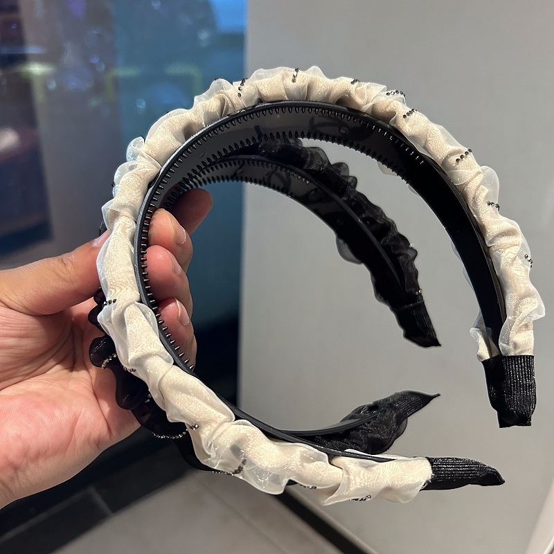 韩版简约褶皱高颅顶发箍气质缎面压发宽边防滑百搭洗脸头箍发饰女
