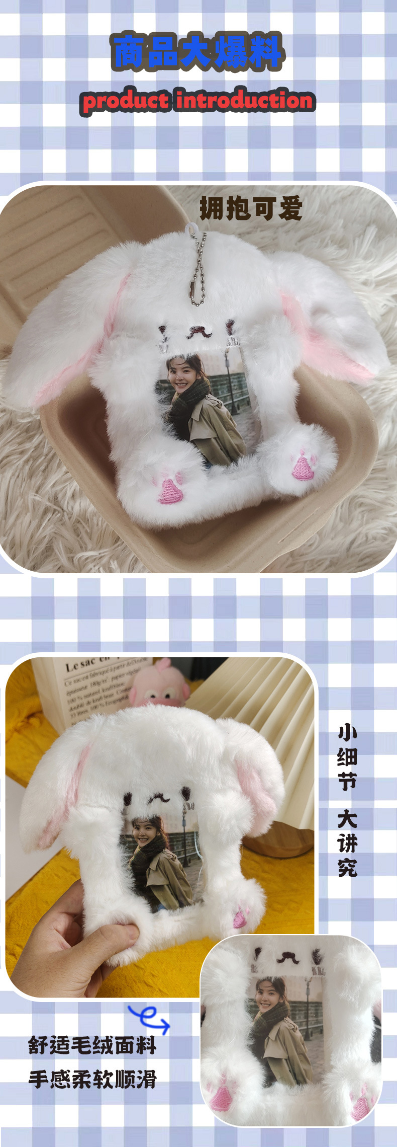 卡套大耳朵兔子毛绒卡套校园卡公交卡保护套展示挂件