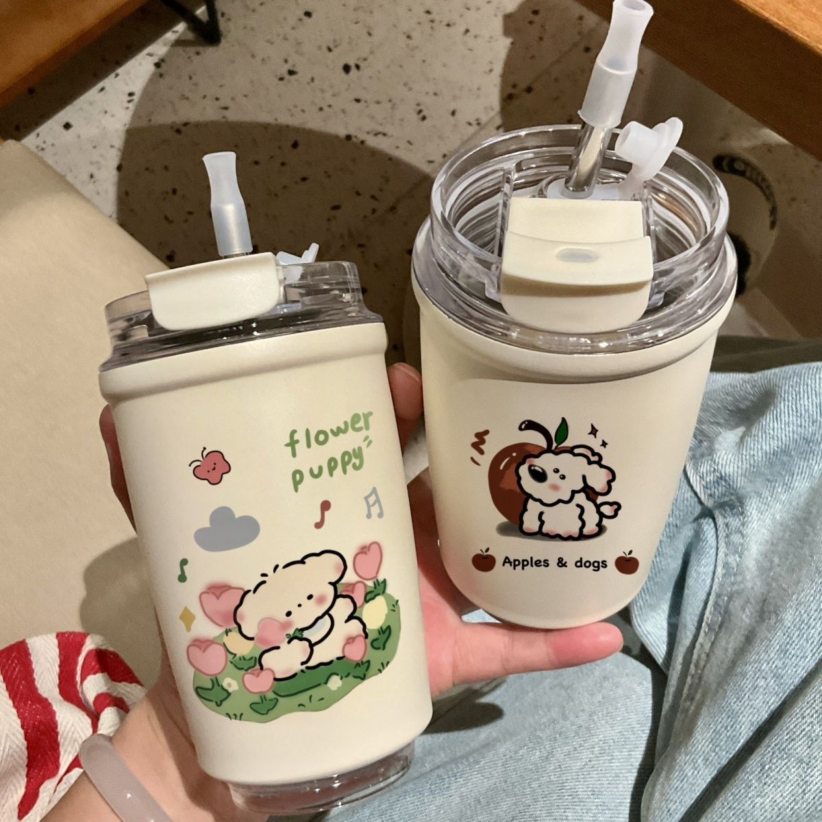 原创奶油保温杯-郁金香小狗