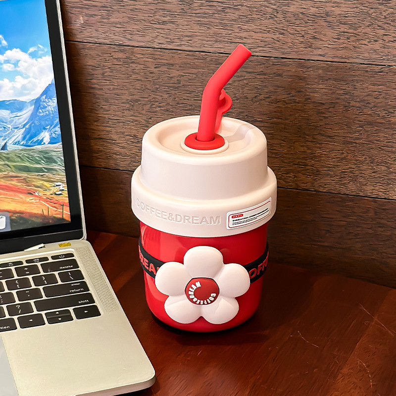 保温杯女生高颜值吸管杯新款学生可爱不锈钢水杯办公室咖啡杯