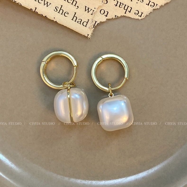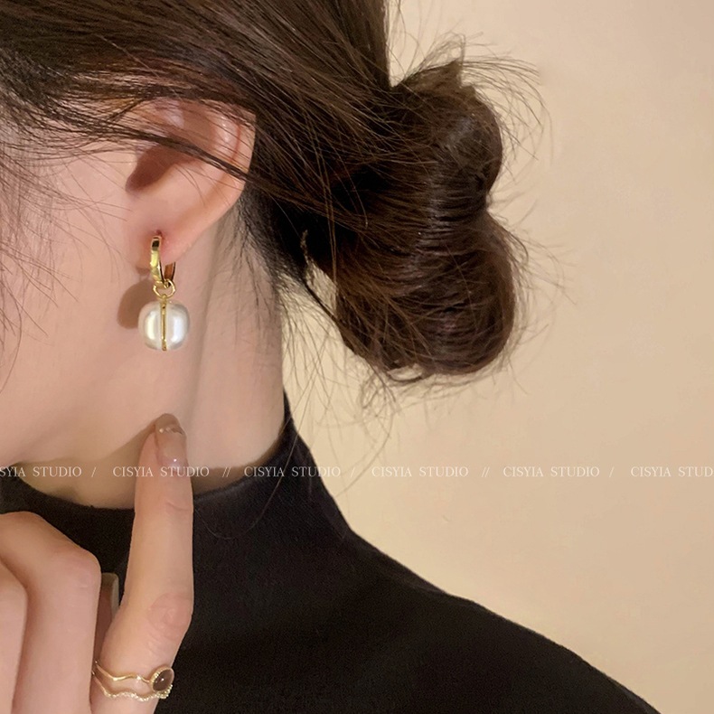 法式珍珠吊坠耳环女小众设计感高级耳扣新款洋气珍珠耳圈耳饰