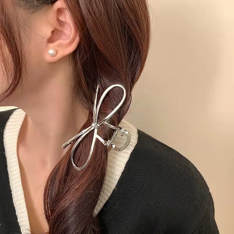 蝴蝶结发夹抓夹女后脑勺鲨鱼夹大号发量多夹子头饰高级感金属抓