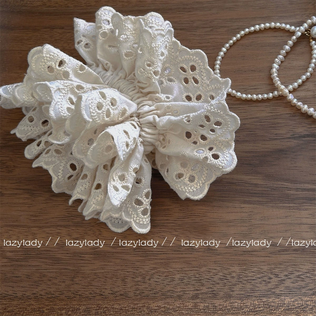 fever赵露思同款白色蕾丝镂空花边发圈法式大号扎头发头花头绳女