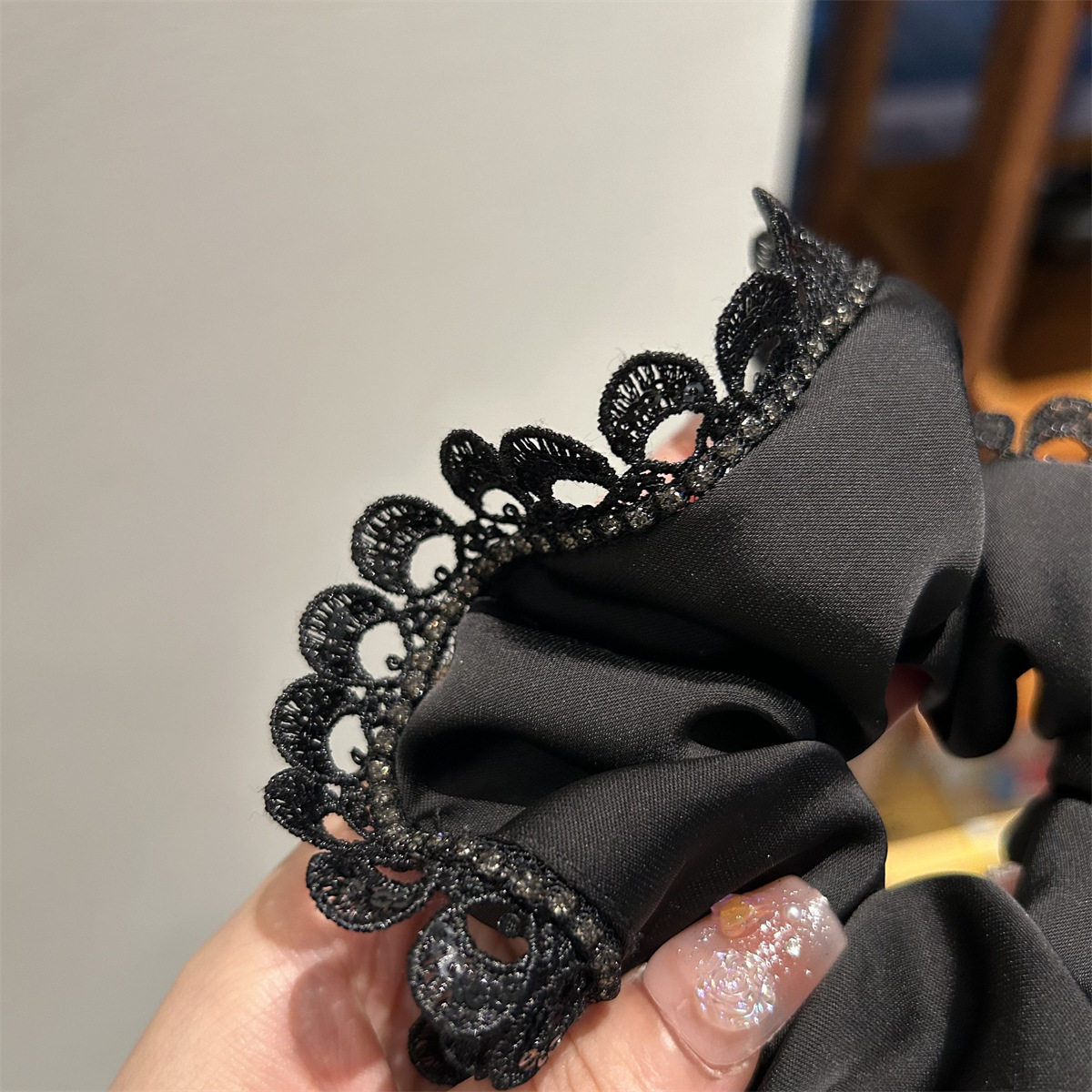 法式蕾丝黑色气质大肠发圈女高级感轻奢名媛花边镶钻发圈丸子头绳